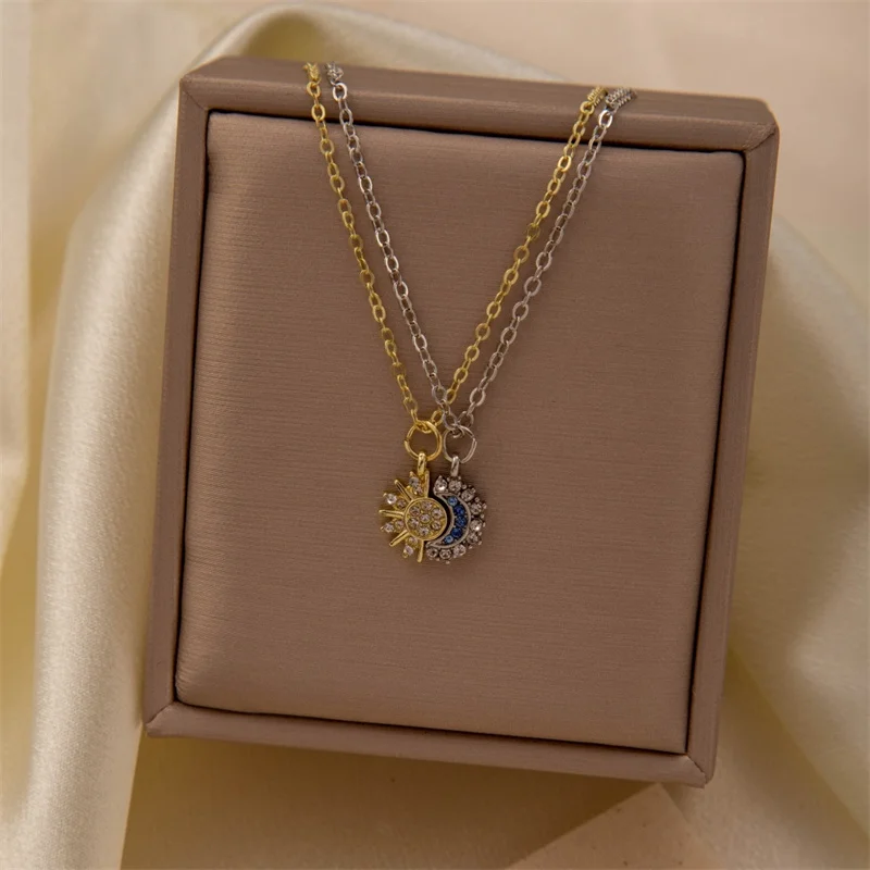 שרשרת זוגית מגנטית חדשה מפלדת אל-חלד עם שמש וירח, שרשרת אופנתית לגברים ונשים, מתנות טובות לחברים, תכשיטי מגמה