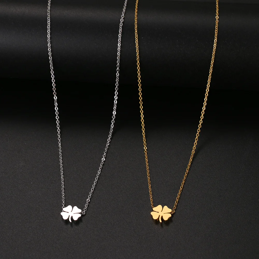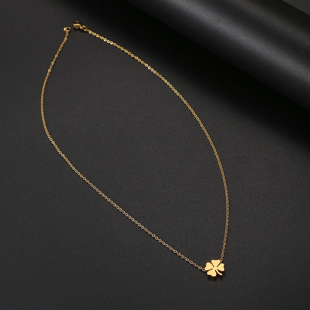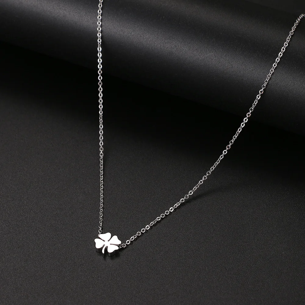 שרשרת צוואר מפלדת אל-חלד עלה ארבעה עלה אופנה סגנון קלאסי שרשרת גברים לנשים תכשיטים קולר תליון מתנות חדשות