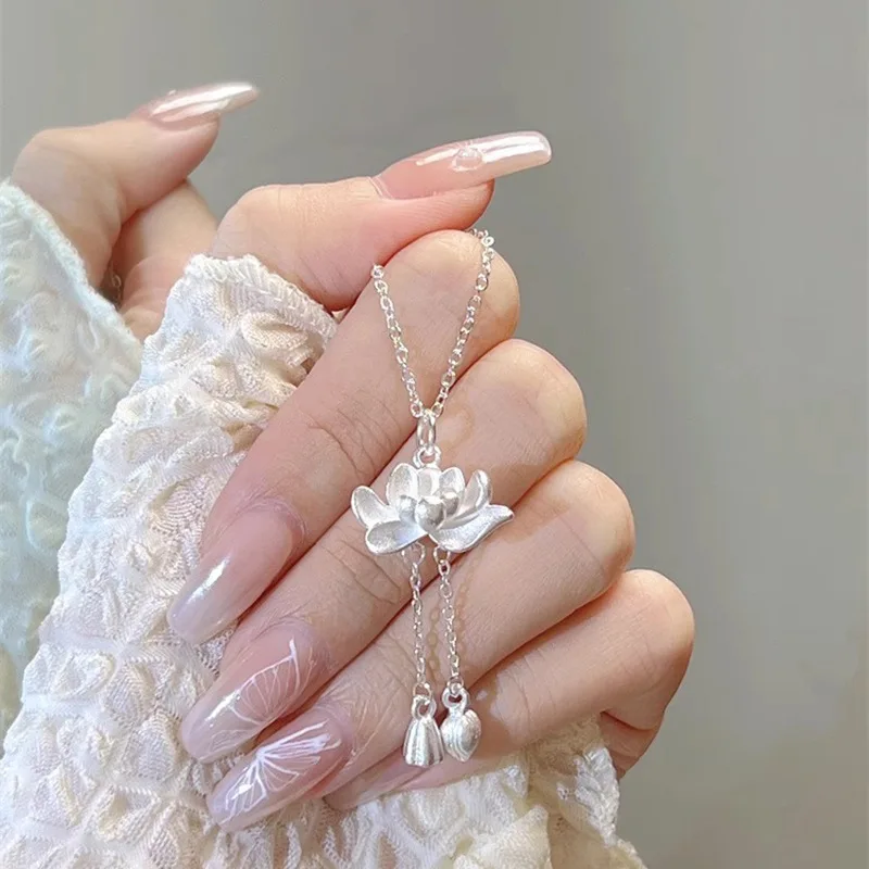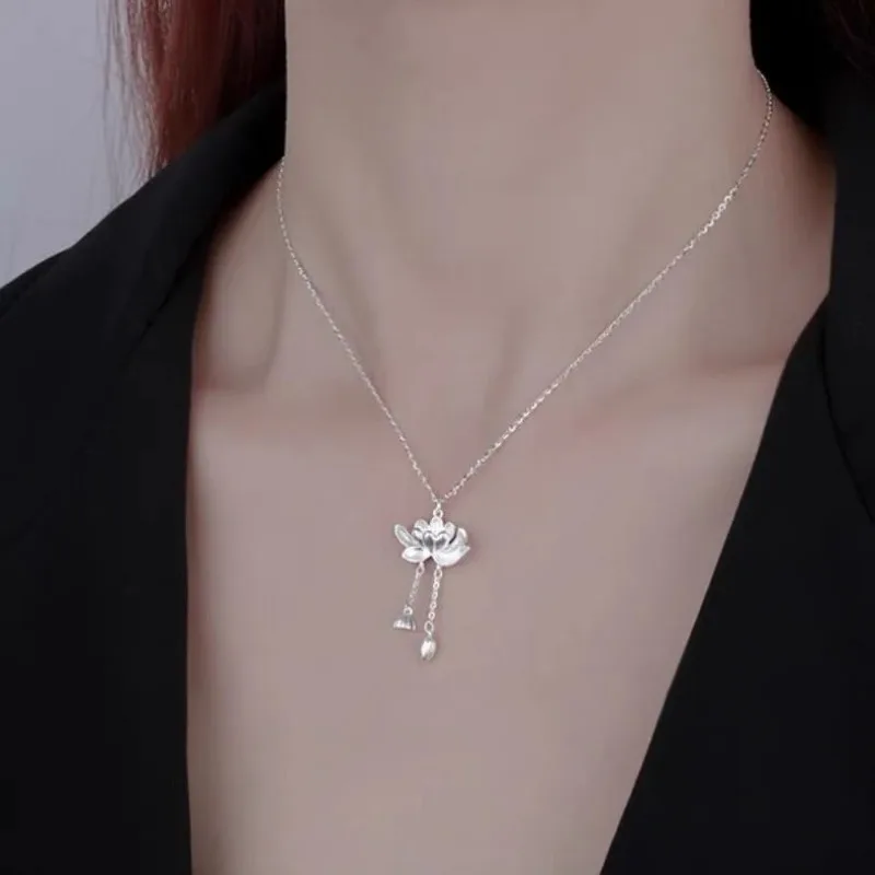 שרשרת תליון לוטוס עם תליון חרוזים לנשים, מזל טוב פופולרי, סגנון סיני חדש, חוק עתיק מגן על השלום, תליון DIY לוטוס