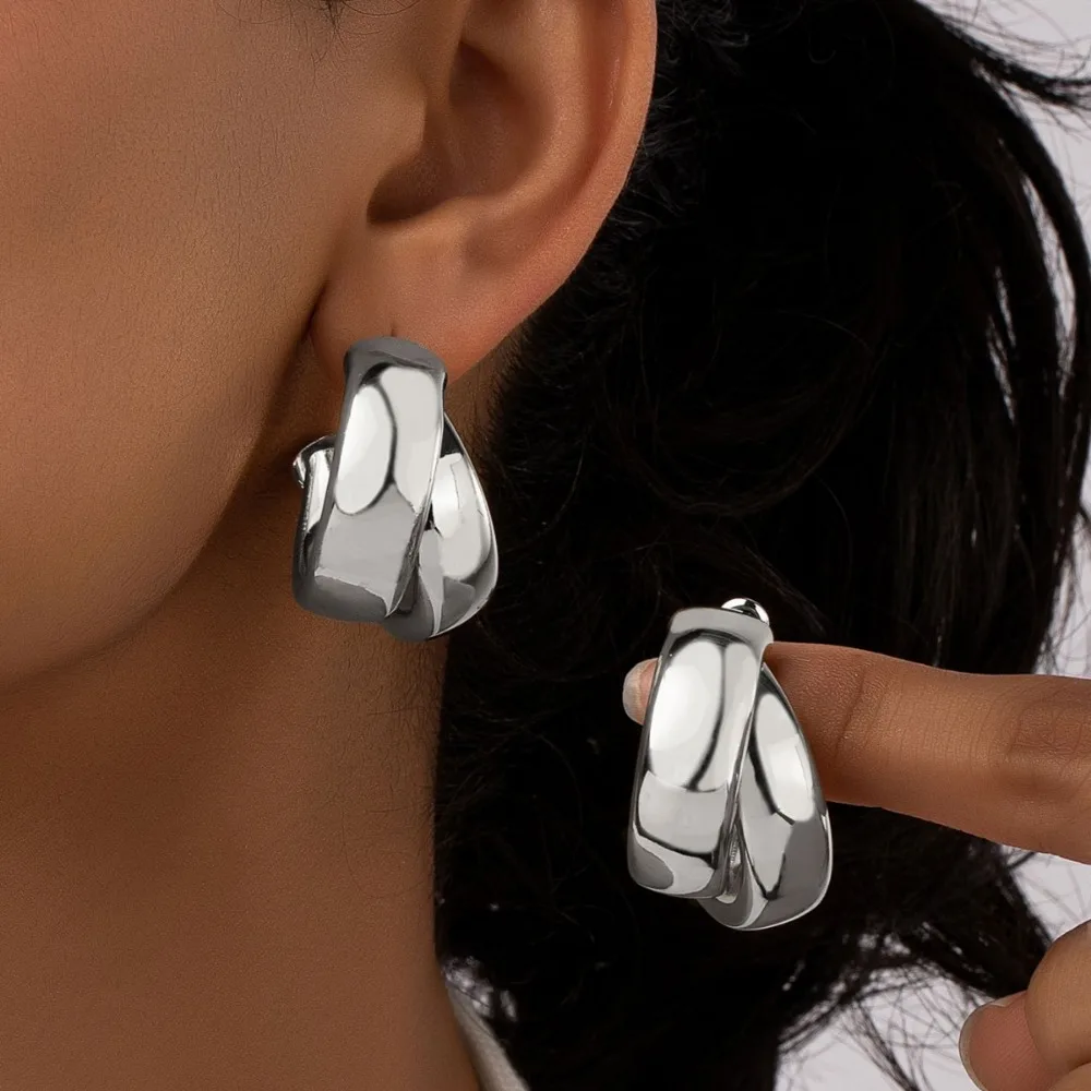 תכשיטי עגילי חישוק מעוגלים בשכבה כפולה בצבע זהב לנשים, עגילי הצהרה פשוטים ואביזרי תכשיטים