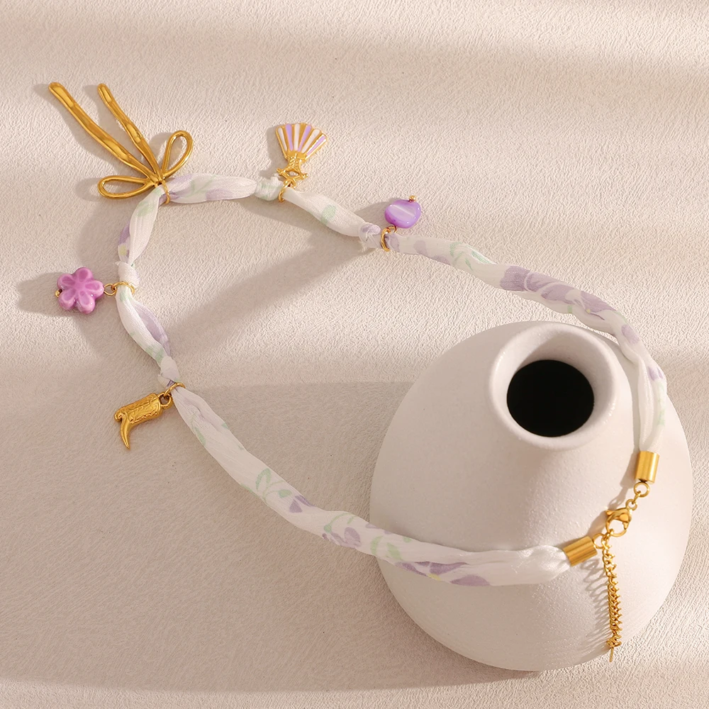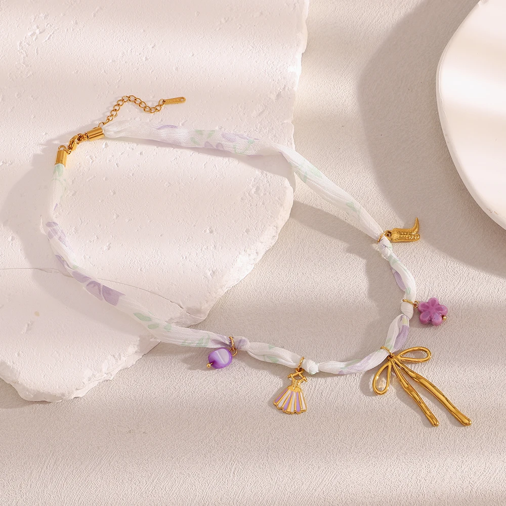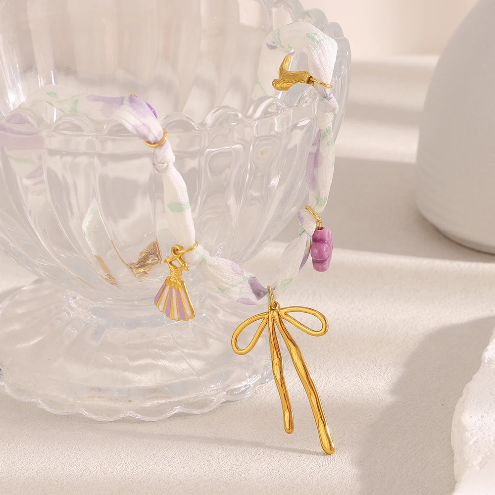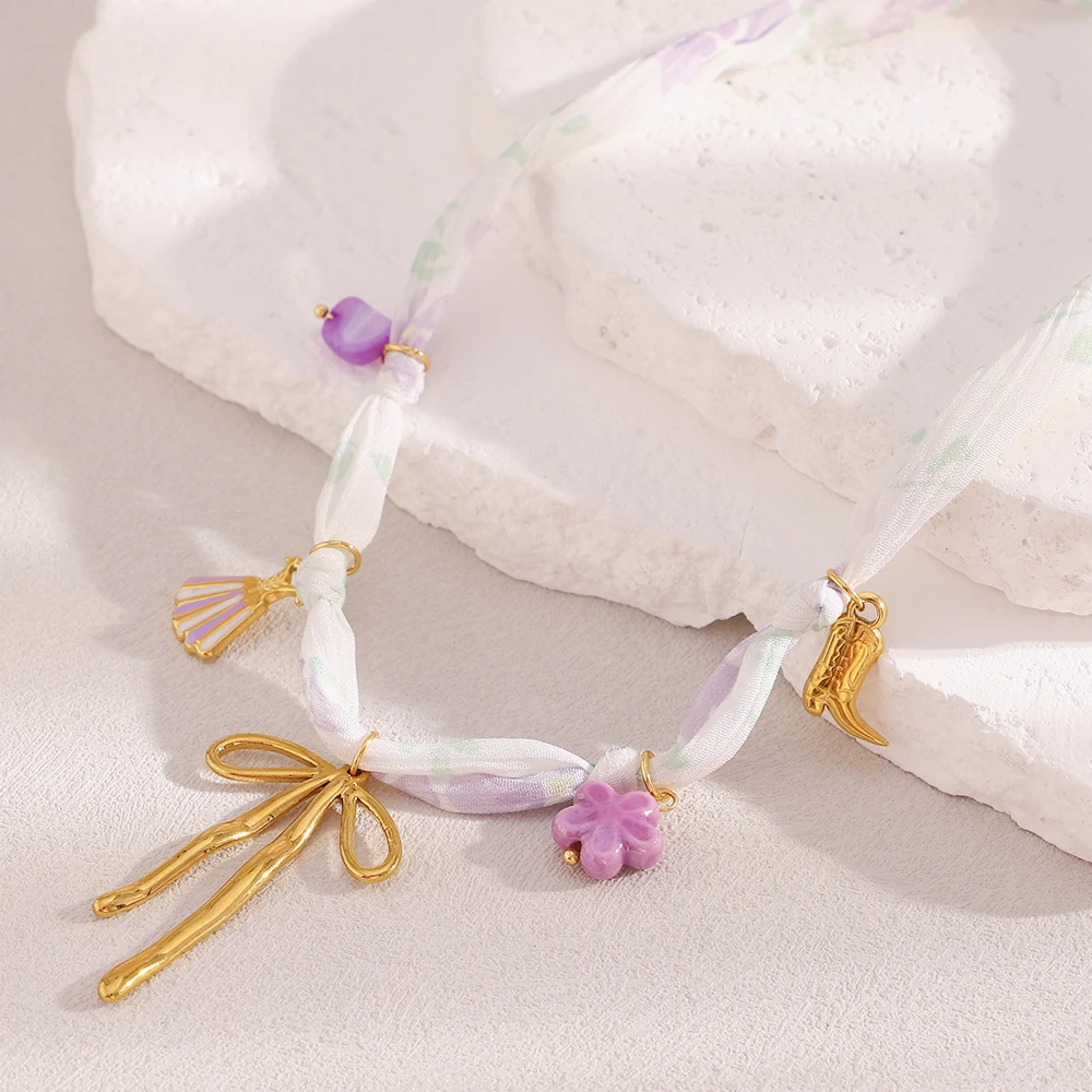 תליון קשת פרח סרט יצירתי חדש של E.B.Belle, מצופה זהב 18K מפלדת אל-חלד לנשים, תכשיטי צוואר לחופשת הקיץ