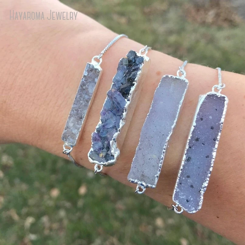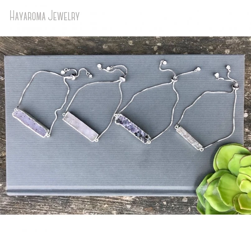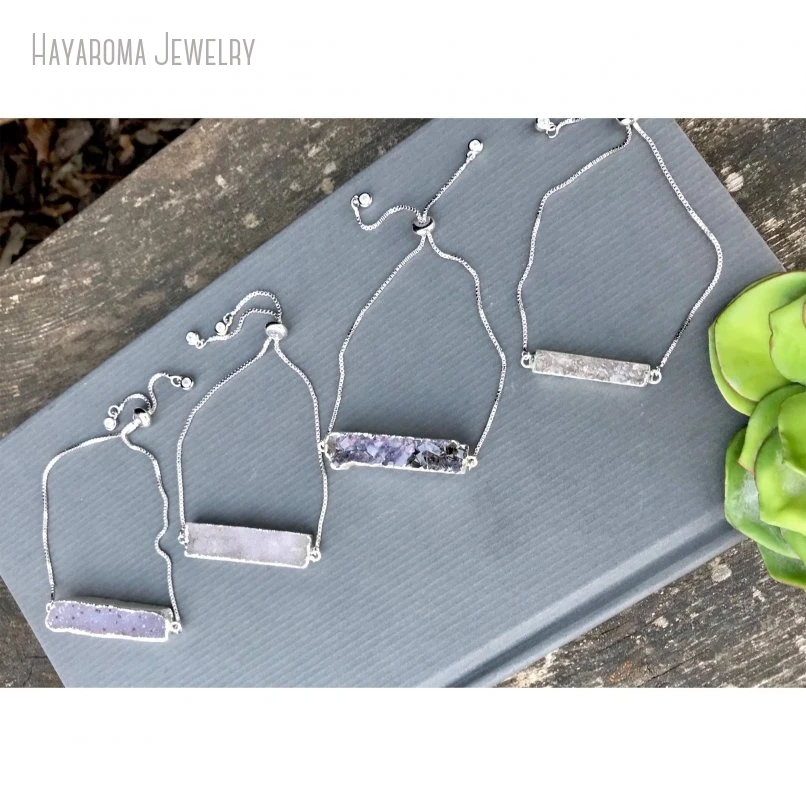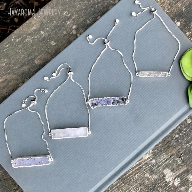 10pcs אפור דרוזי בר צמיד כסף צבע השרוול מתכוונן נשים מינימליסטי נירוסטה מתנה בוהו תכשיטים