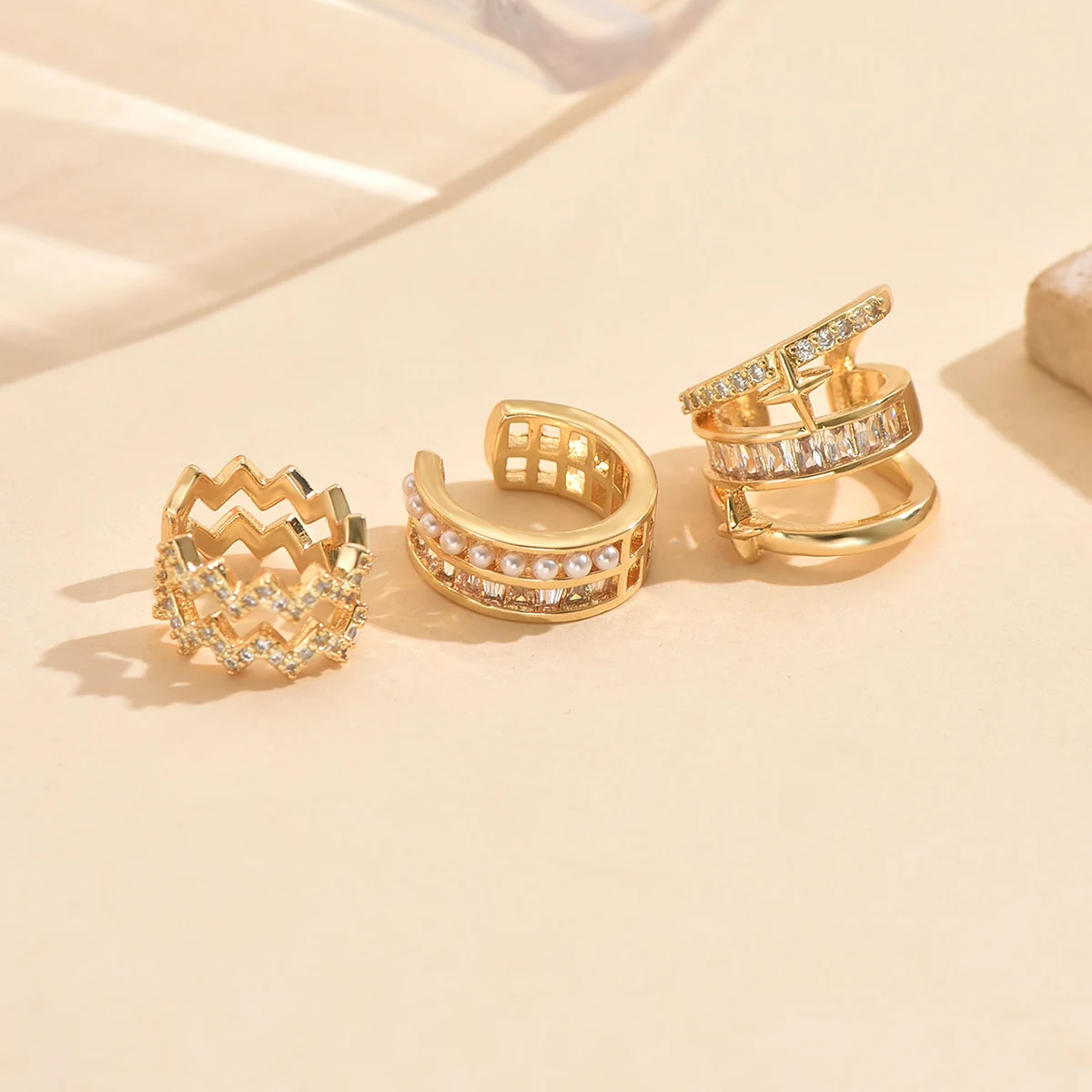 3PC נירוסטה aaa zircon קליפ עגילים אבזם נשים אבזם אבזם לא פירסינג האוזן סחוס מזויף לנשים תכשיטים