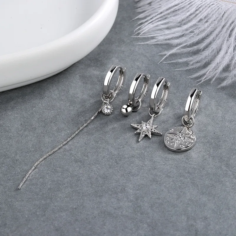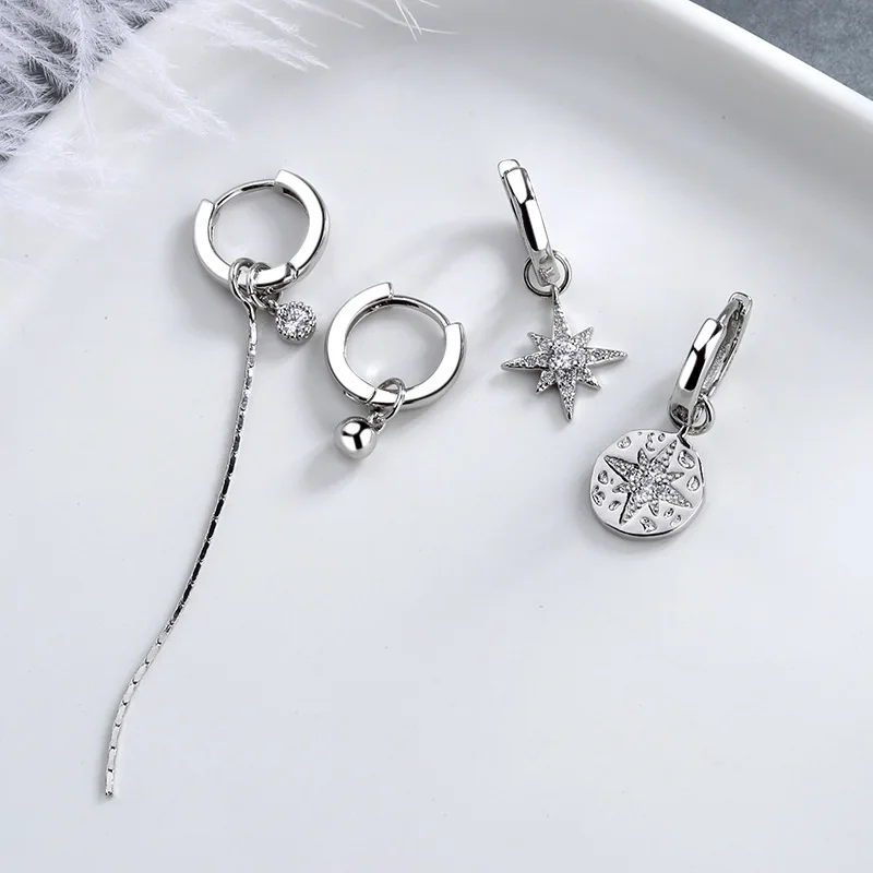 CIAXY כסף צבע ציצית כדור כוכבים לנשים אלגנטי אסימטרית אופנה חישוק עגילי יוקרה הודי תכשיטי מסיבת מתנה