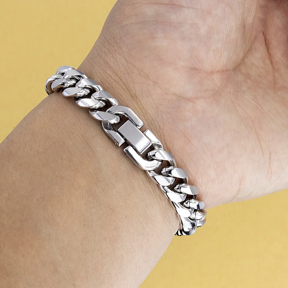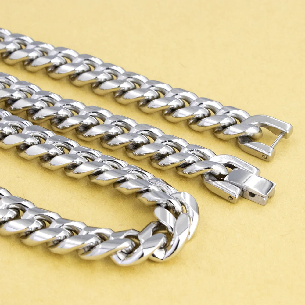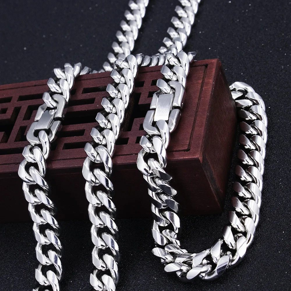 HNSP 316L נירוסטה כפולה שרשרת קישור קובנית שרשרת לגברים 8MM-12MM עבה כבדה בסגנון פאנק אופנוענים אביזרים לגברים מתנה