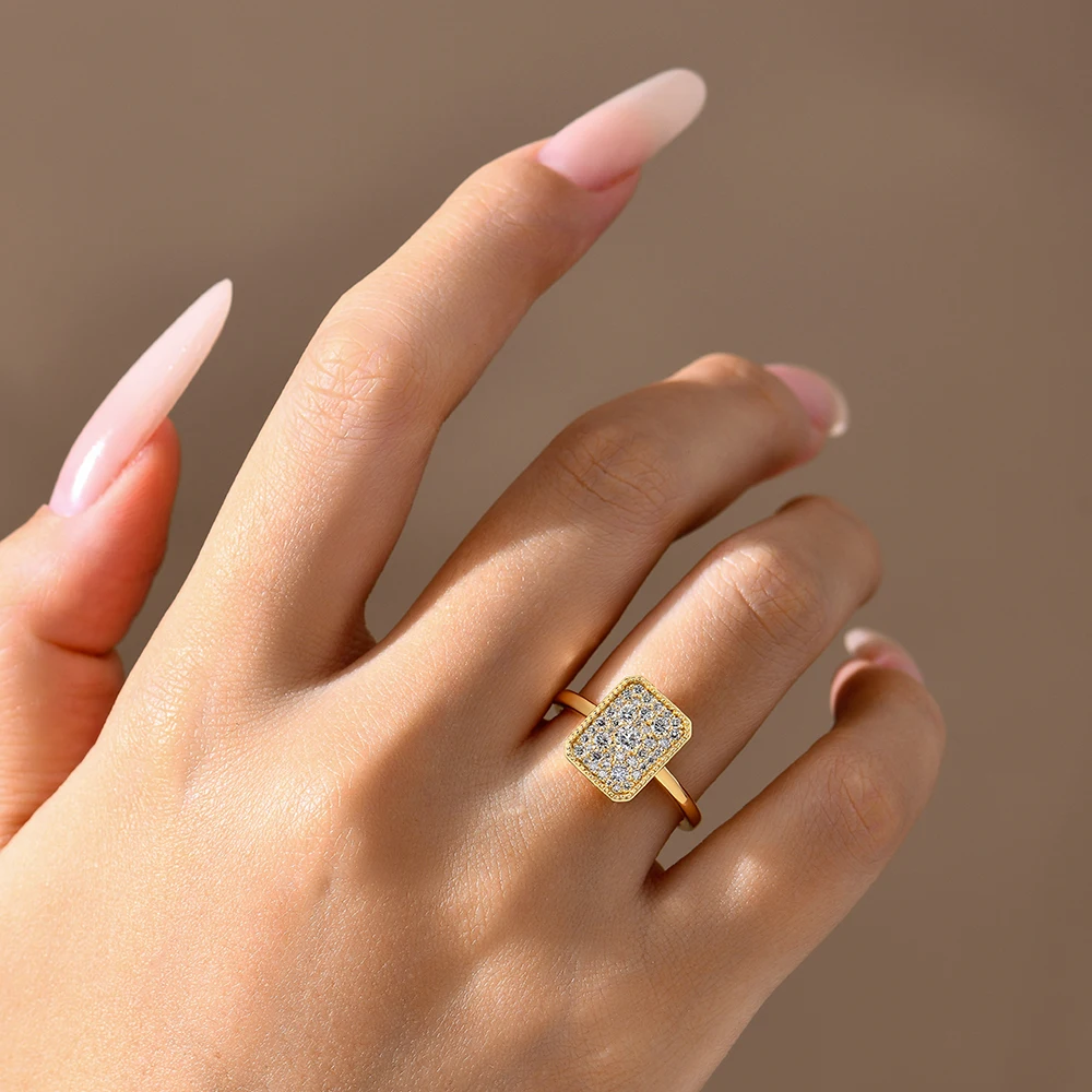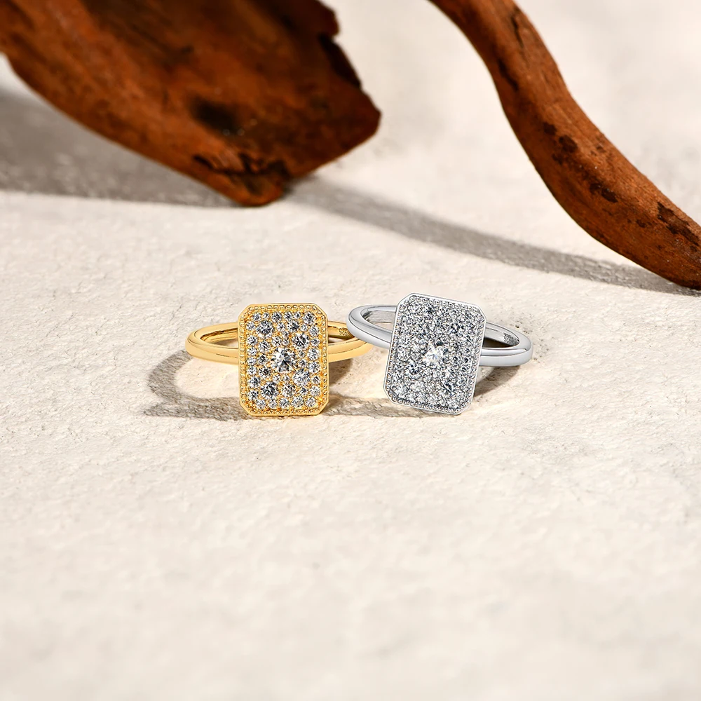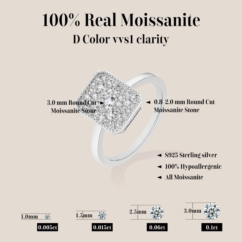 טבעת אירוסין מזהב לבן מכסף סטרלינג 925 עם עיצוב מלבני מואיסנייט DVVS1 מקורי ATTAGEMS תכשיטים איכותיים