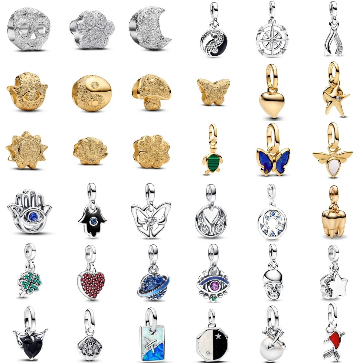 צמיד Fit Original Me קטן מכסף 925 עם חור קטן, סדרת Me, חרוז לב, שמש, אש, טבעת קמע, אביזרי תכשיטים DIY