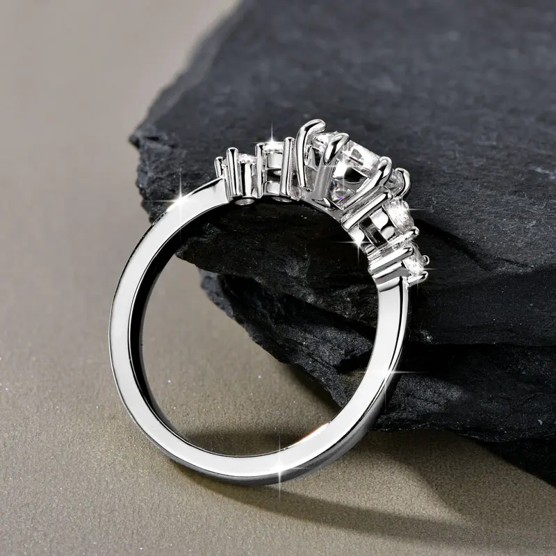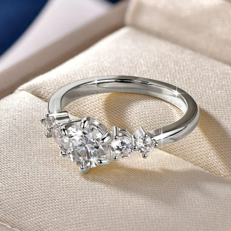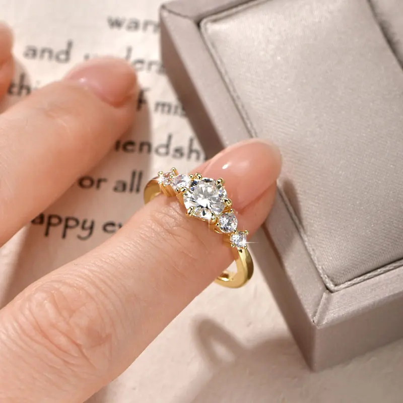 Rrjzz 1CT D Color VVS1 חיתוך עגול מעבדה חיקוי יהלום Moissanite טבעת אירוסין עם GRA 14k מצופה זהב טבעת נישואין לנשים