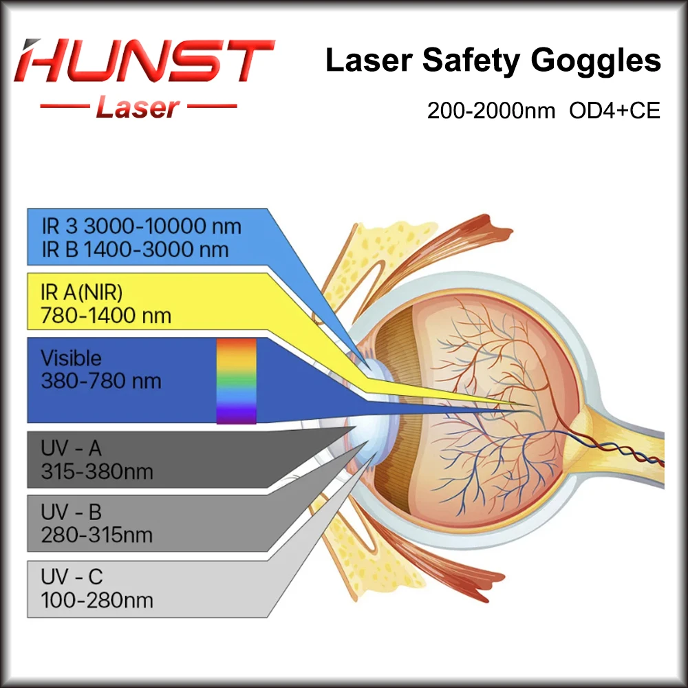 HUNST אינפרא אדום אולטרה סגול כיסוי מגן לייזר לעיבוד לייזר משקפי מגן 200-2000nm OD4+CE משקפי מגן