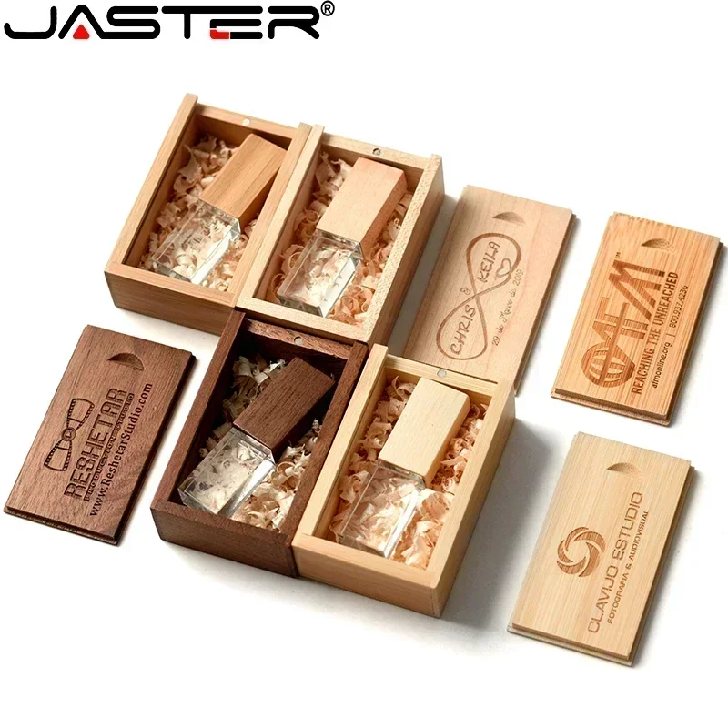 JASTER 10 יחידות הרבה קריסטל תיבת עץ מייפל USB מקלדת זיכרון חינם לוגו מותאם אישית מקלדת עץ מקלדת 32GB 64GB 128GB
