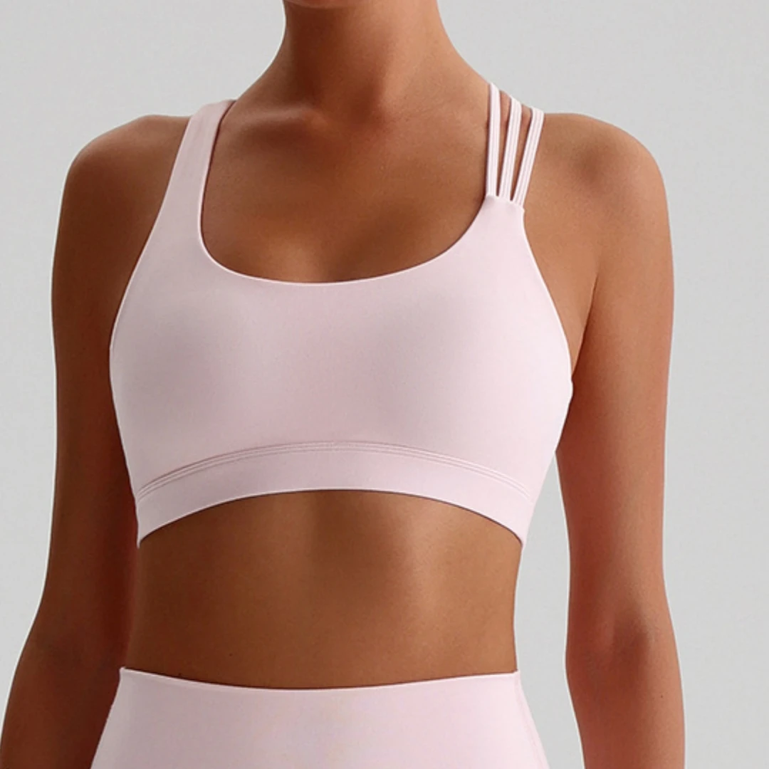 סוליד צבע כוח גבוה רצועת כתף צלב חדר כושר תחתונה לנשים ספורט ברה עליונה עמידה במכות ספורטיבית צמודה לאימון