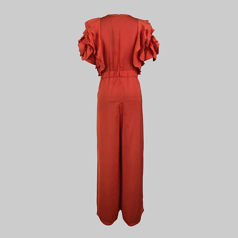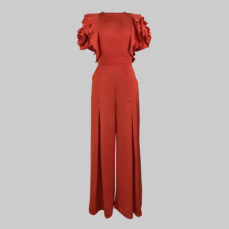 Modigirl Rosso Pagliaccetto Tuta Donna 2025 Nuova Estate Falbala Maniche Corte Gamba Larga Tute Donna Elegante Partito Abiti Formali