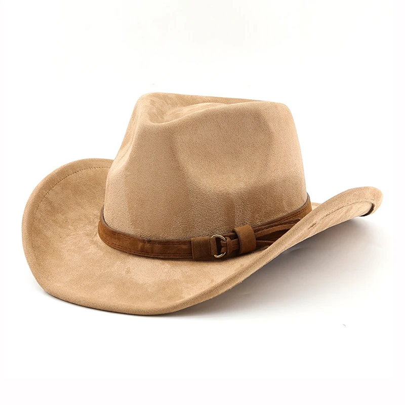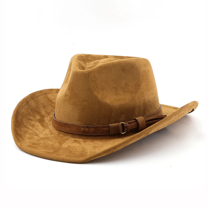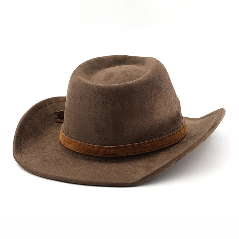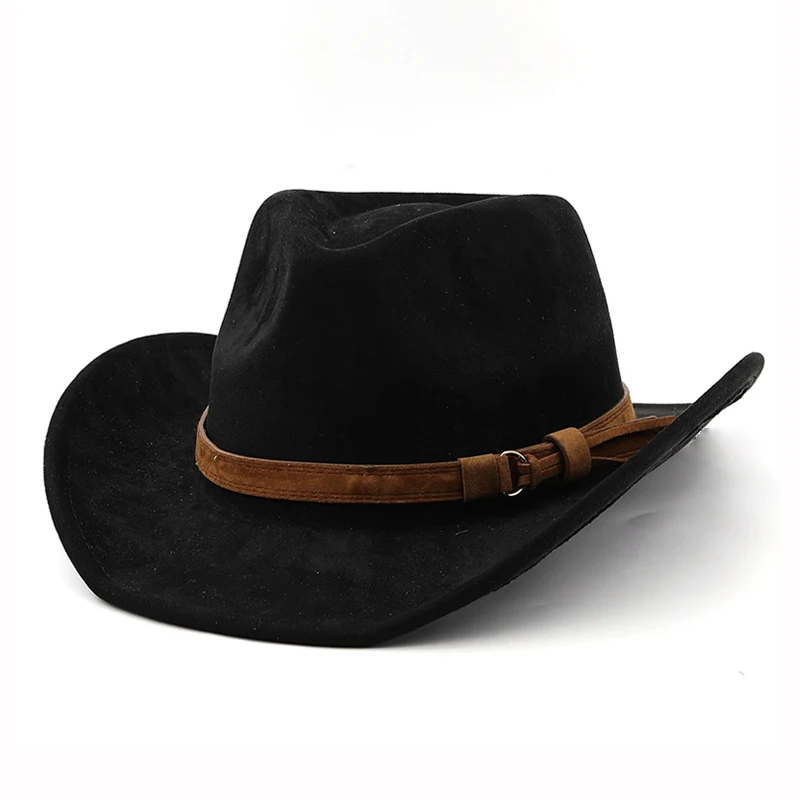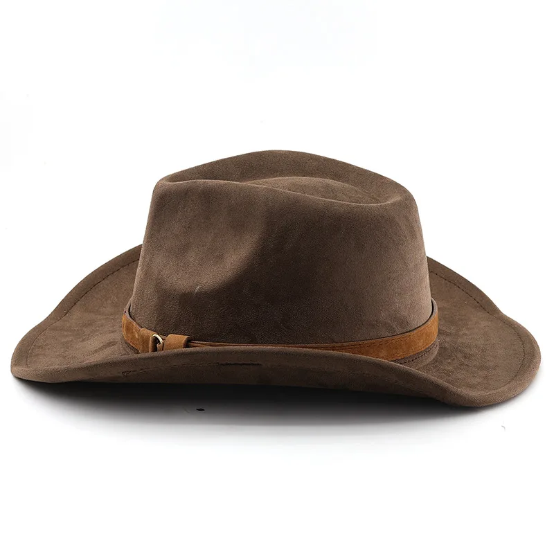 Cappello da cowboy occidentale in stile etnico Cappello da jazz in velluto imitazione pelle Cappello Fedora con bordo arrotolato autunno e inverno