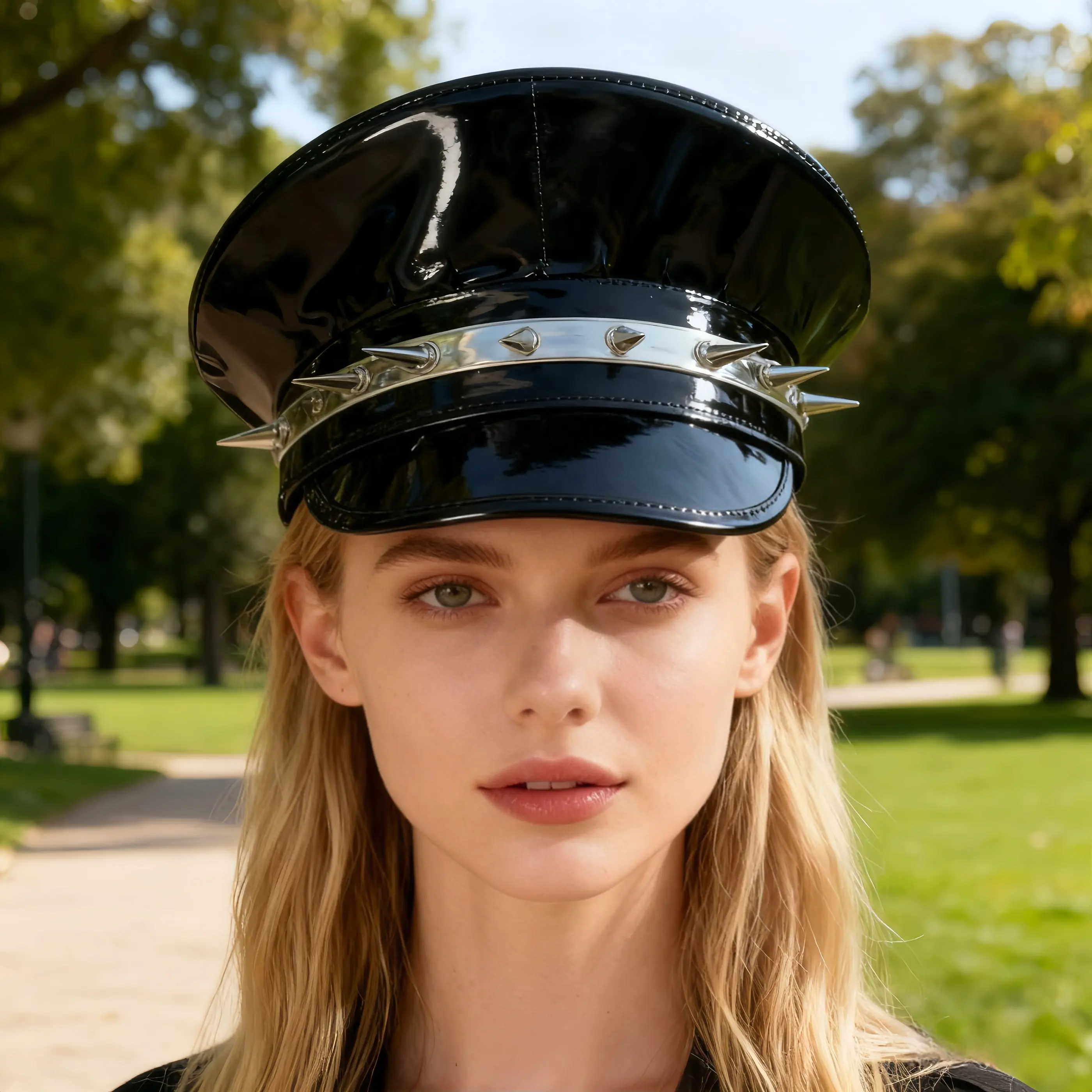 HongLuan Cappello da Capitano Gotico Steampunk Nero/Rosso Festival Burningman, Berretto Militare Tedesco per Donna, Cappelli in Ecopelle per Feste