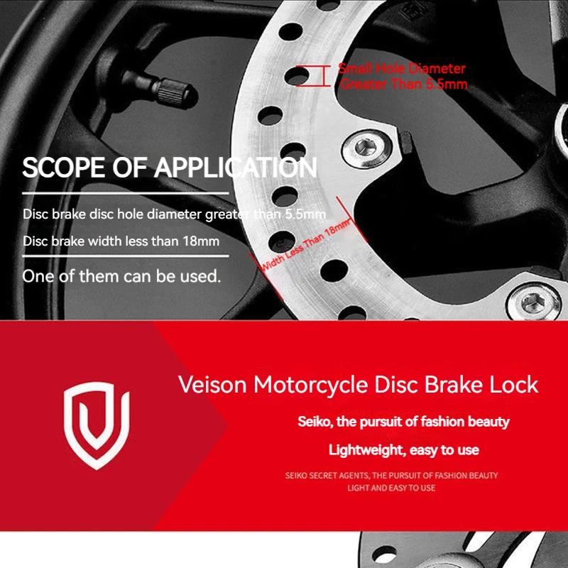 VEISON Lucchetto per bici da moto Mini lucchetto per ruota con freno a disco in acciaio temprato antifurto per impieghi gravosi con 2 chiavi Accessori