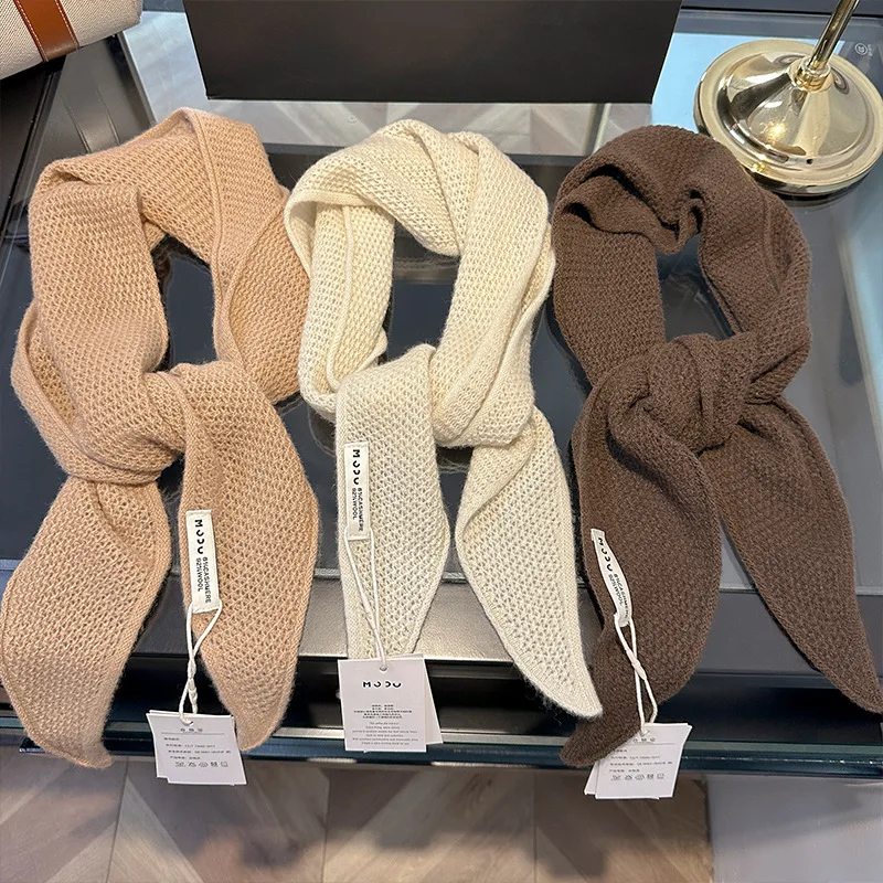 Sciarpa lavorata a maglia Donna 92% Lana Sciarpe calde invernali Design in tinta unita brillante Scialle ispessito Triangolo morbido Collo di pashmina 2025 NUOVO