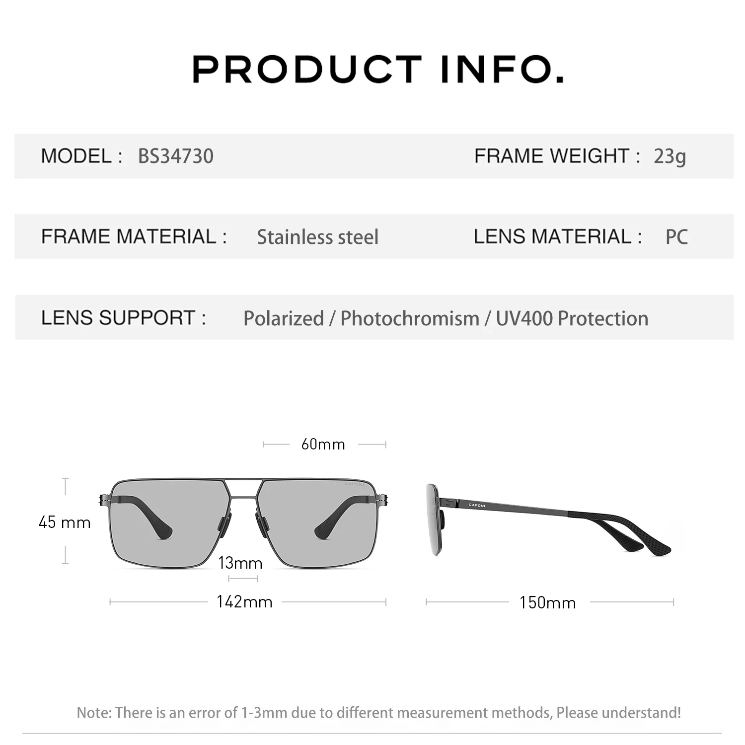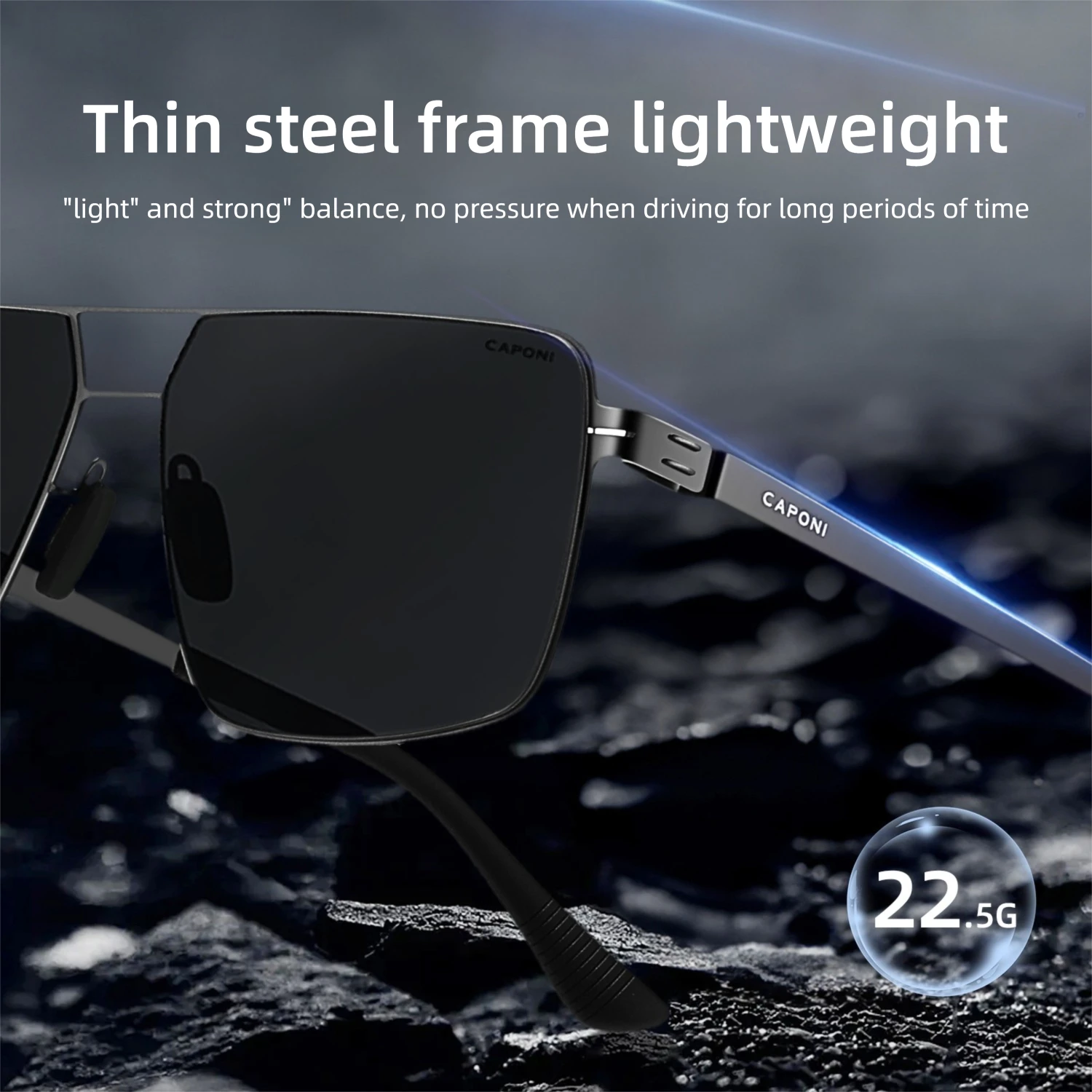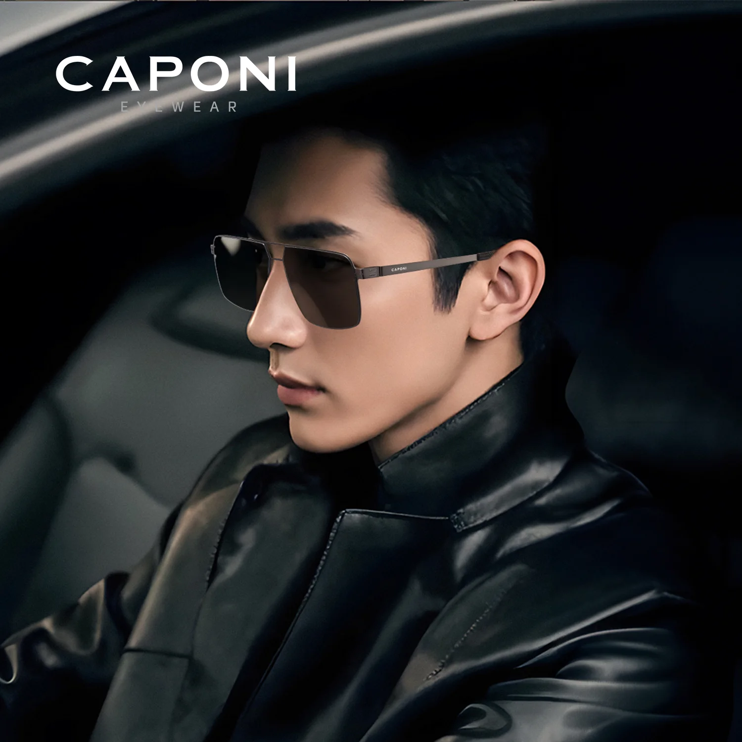 CAPONI Nuovi occhiali da sole polarizzati da uomo Fotocromatici Occhiali da sole da esterno in acciaio inossidabile di alta qualità Antiriflesso Ombra nera BS34730
