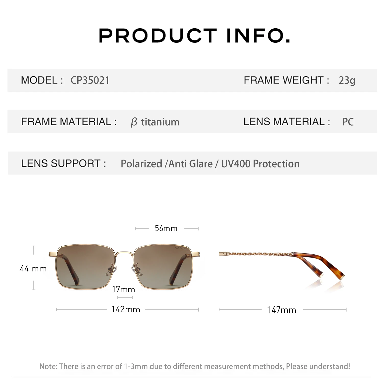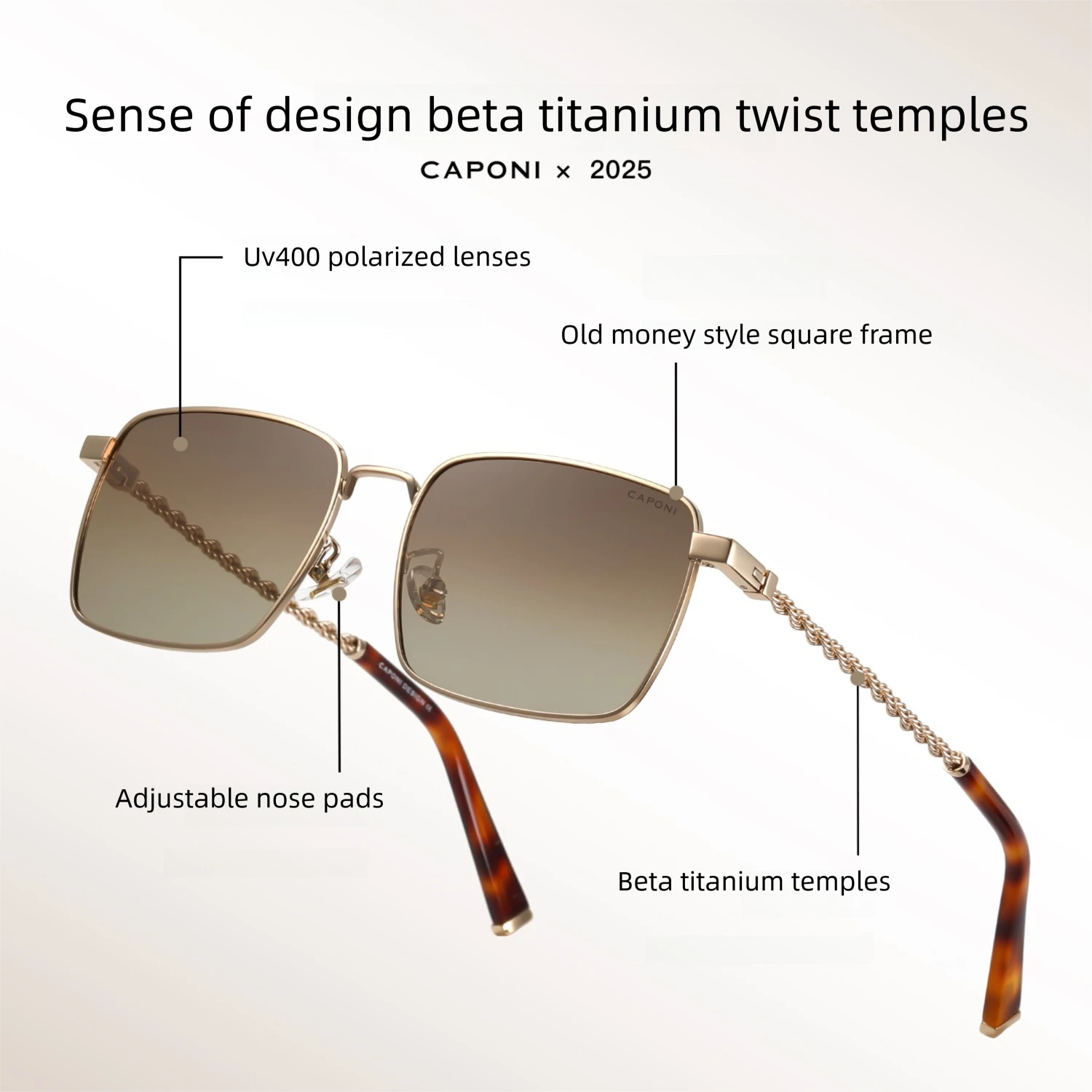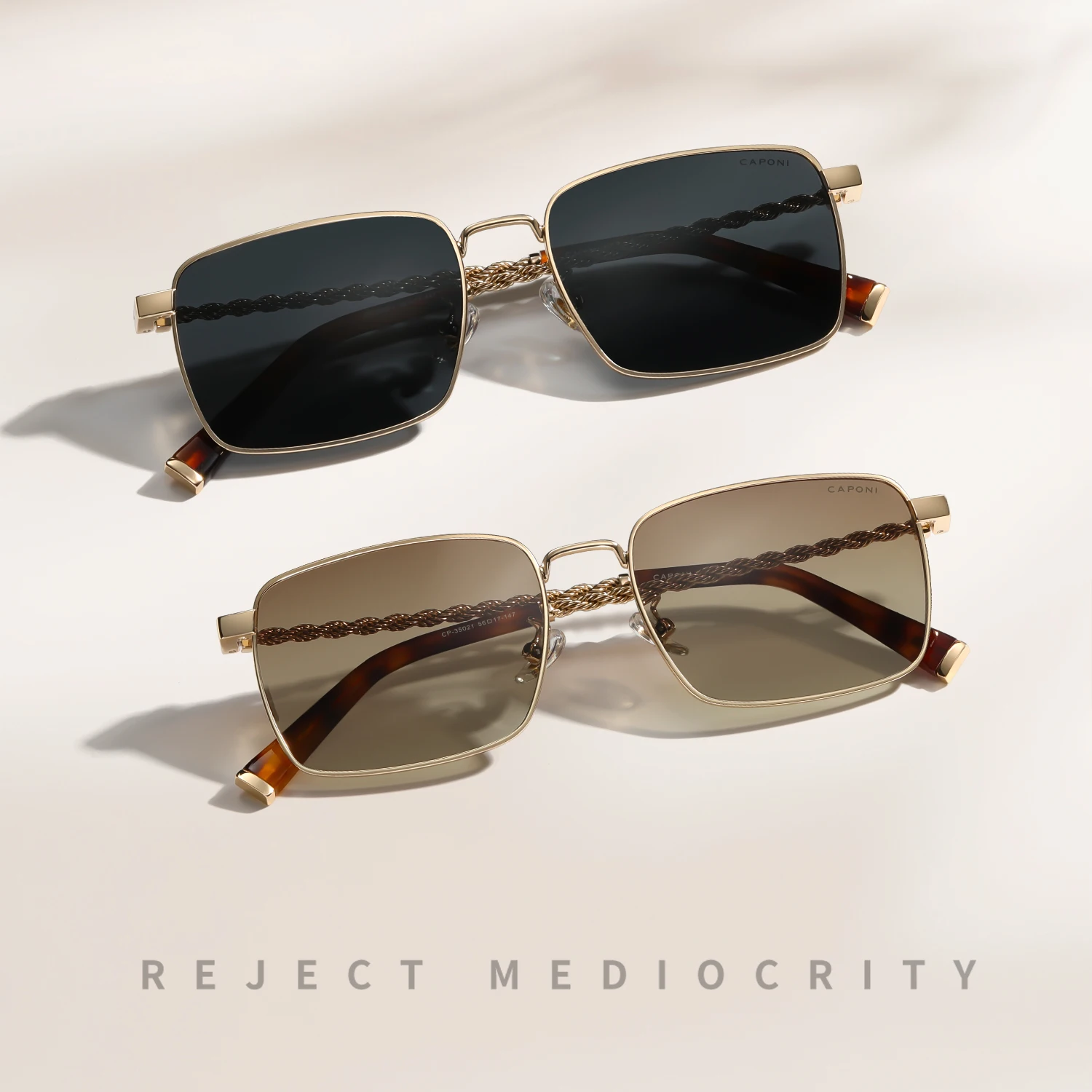 CAPONI Occhiali da sole da donna di lusso Titanio Occhiali da sole per vacanze all'aria aperta Marchio ufficiale Antiriflesso UV400 Proteggi la tonalità marrone CP35021