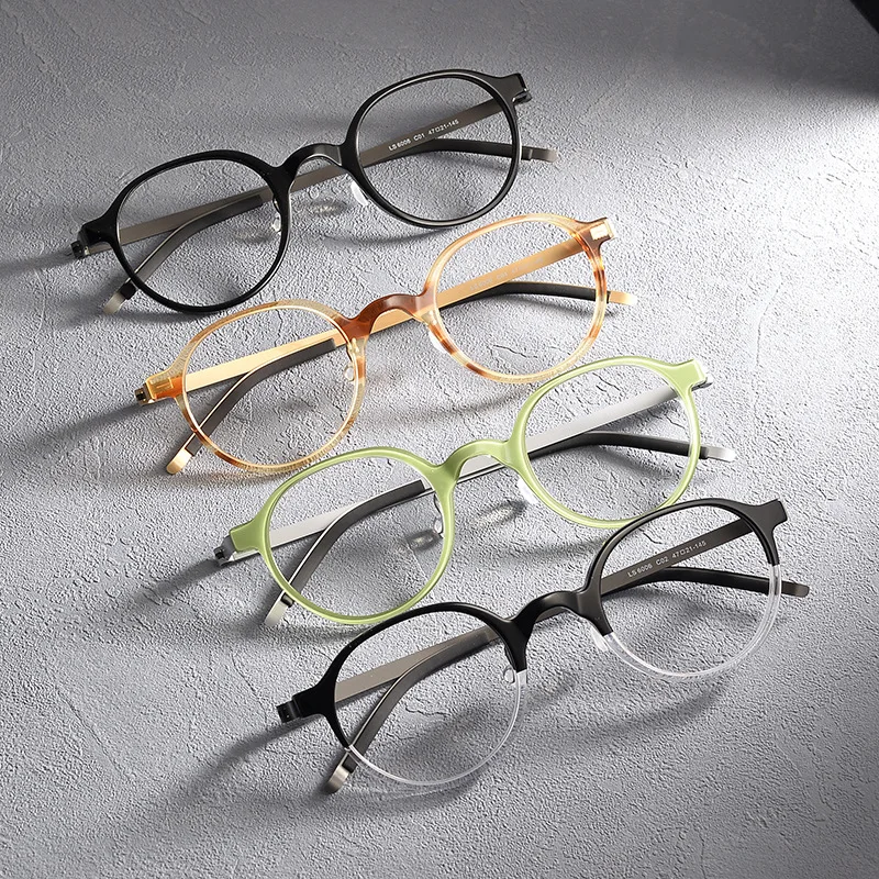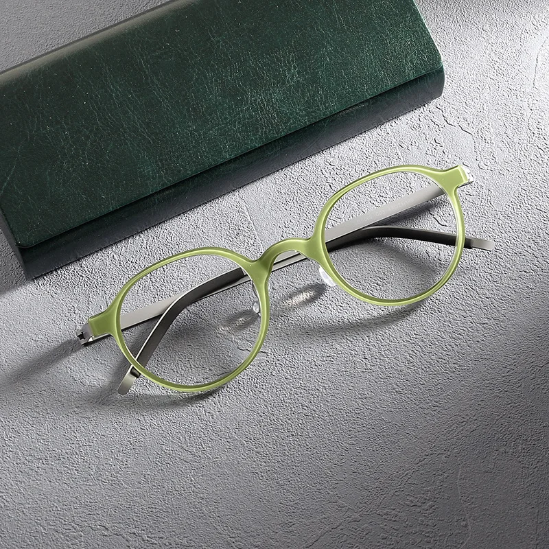 Corea Fashion Round Screwless Glasses Frame uomo donna Ultralight Titanium acetato occhiali da vista Vintage fatti a mano occhiali colorati