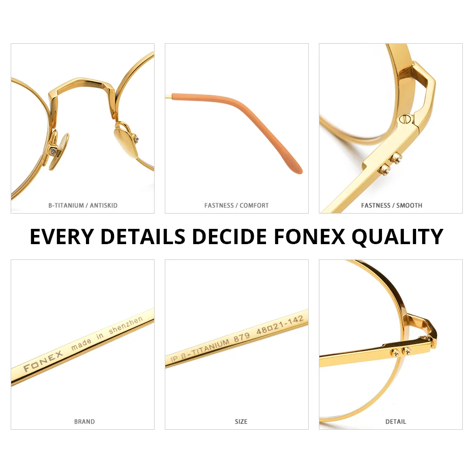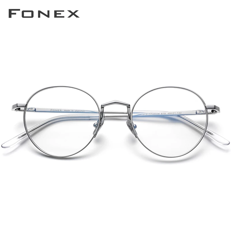 FONEX Occhiali da vista in titanio Montatura da donna Occhiali da vista rotondi vintage ultraleggeri da uomo Occhiali da vista retrò giapponesi di alta qualità 879