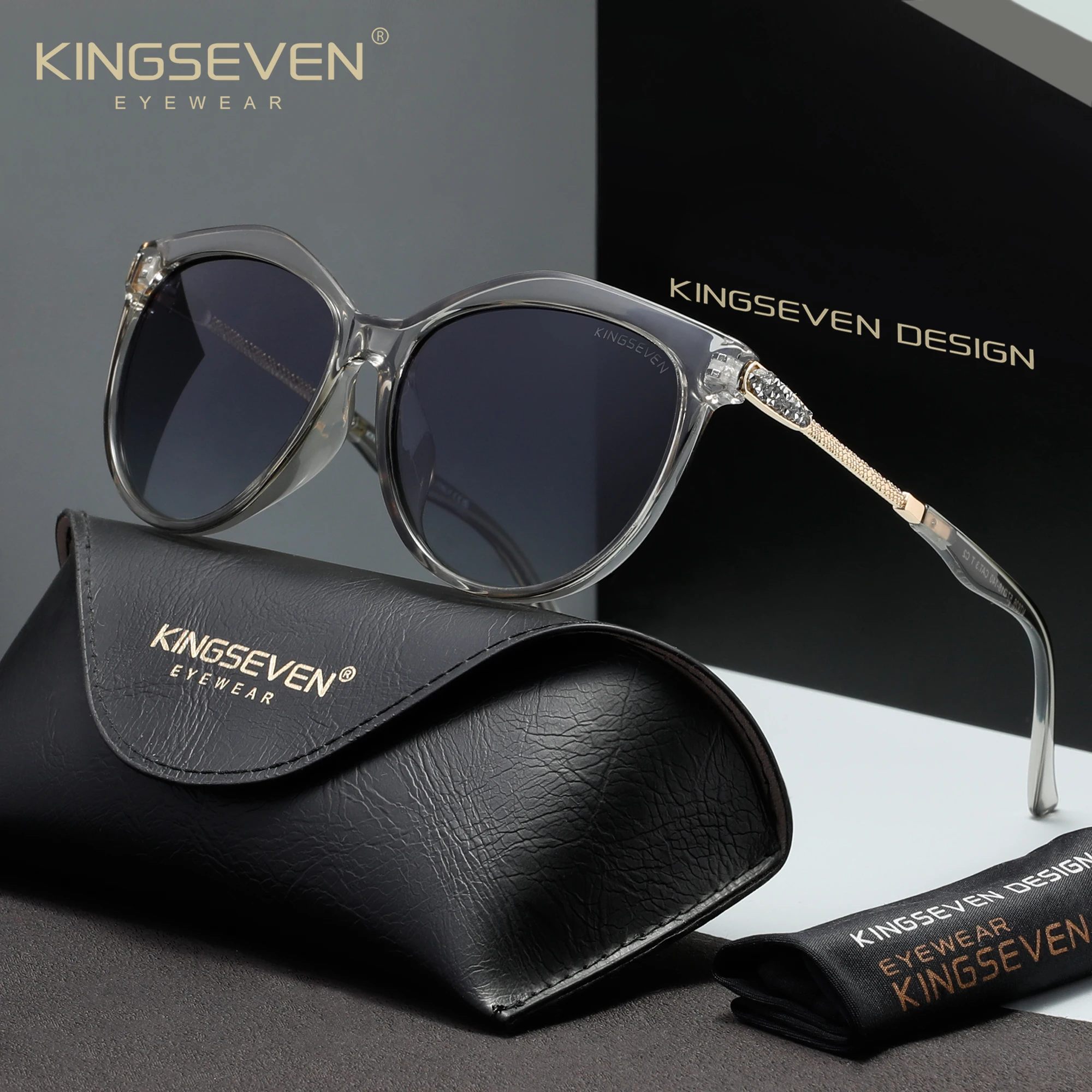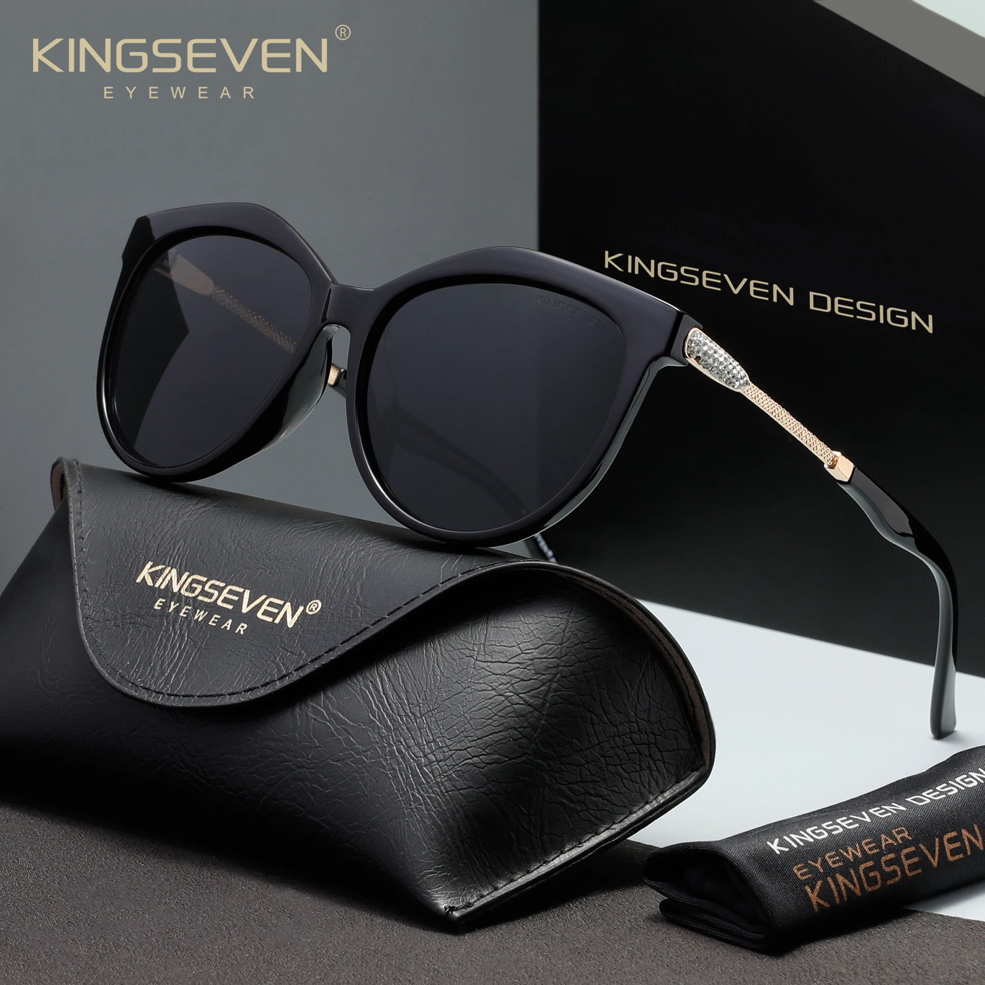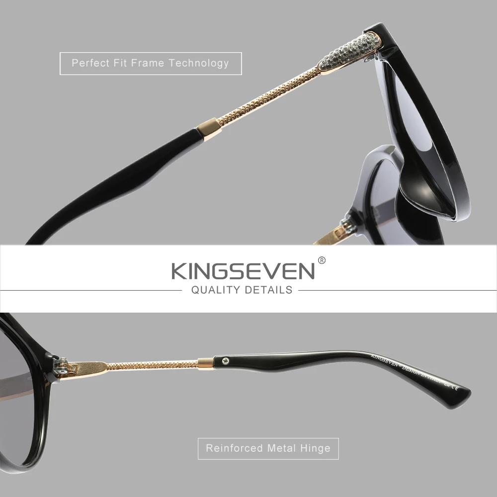 KINGSEVEN Occhiali da Sole Casual da Donna, Polarizzati UV400, Protezione per la Guida, Montatura Larga Rotonda Stile Cat Eye, Occhiali di Lusso alla Moda
