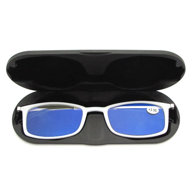 May Flower Occhiali da lettura sottili con blocco della luce blu Occhiali da vista Uomo Donna Occhiali portatili Miope con custodia per telefono + 3.5 + 4