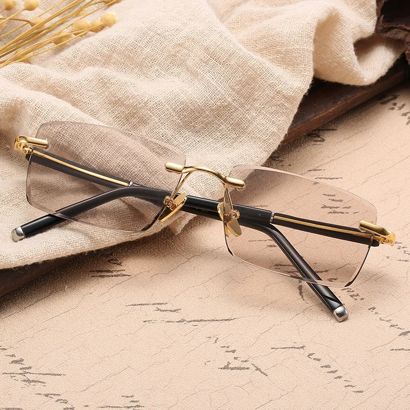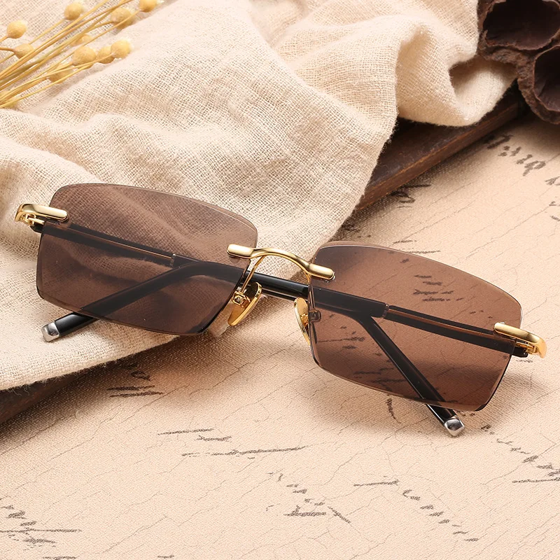 Occhiali da sole in vetro senza montatura da uomo Occhiali da sole di lusso in pietra di cristallo con lenti marroni Occhiali da sole vintage in oro da uomo Occhiali retrò trasparenti