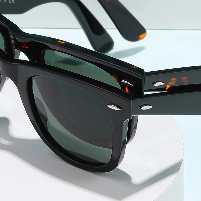 Occhiali da sole inclinabili classici Lenti in vetro Occhiali da sole in acetato da uomo R214B Occhiali di design con rivetti di marca di lusso Occhiali da sole femminili eleganti