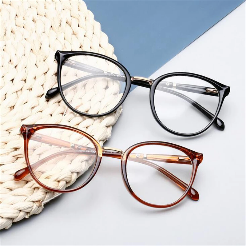 Occhiali da vista ovali con gamba a molla anti-luce blu da donna TR90 Cat Eye Occhiali da vista corti Diottrie da 0 -0,5 -0,75 -1,0 a -6,0