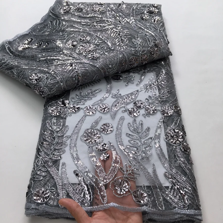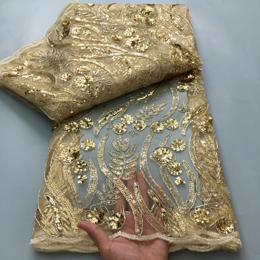 2026 5Y Ultimo tessuto di pizzo africano francese di maglia di alta qualità con design di paillettes Tessuto di pizzo di seta di latte nigeriano per la festa di cucito