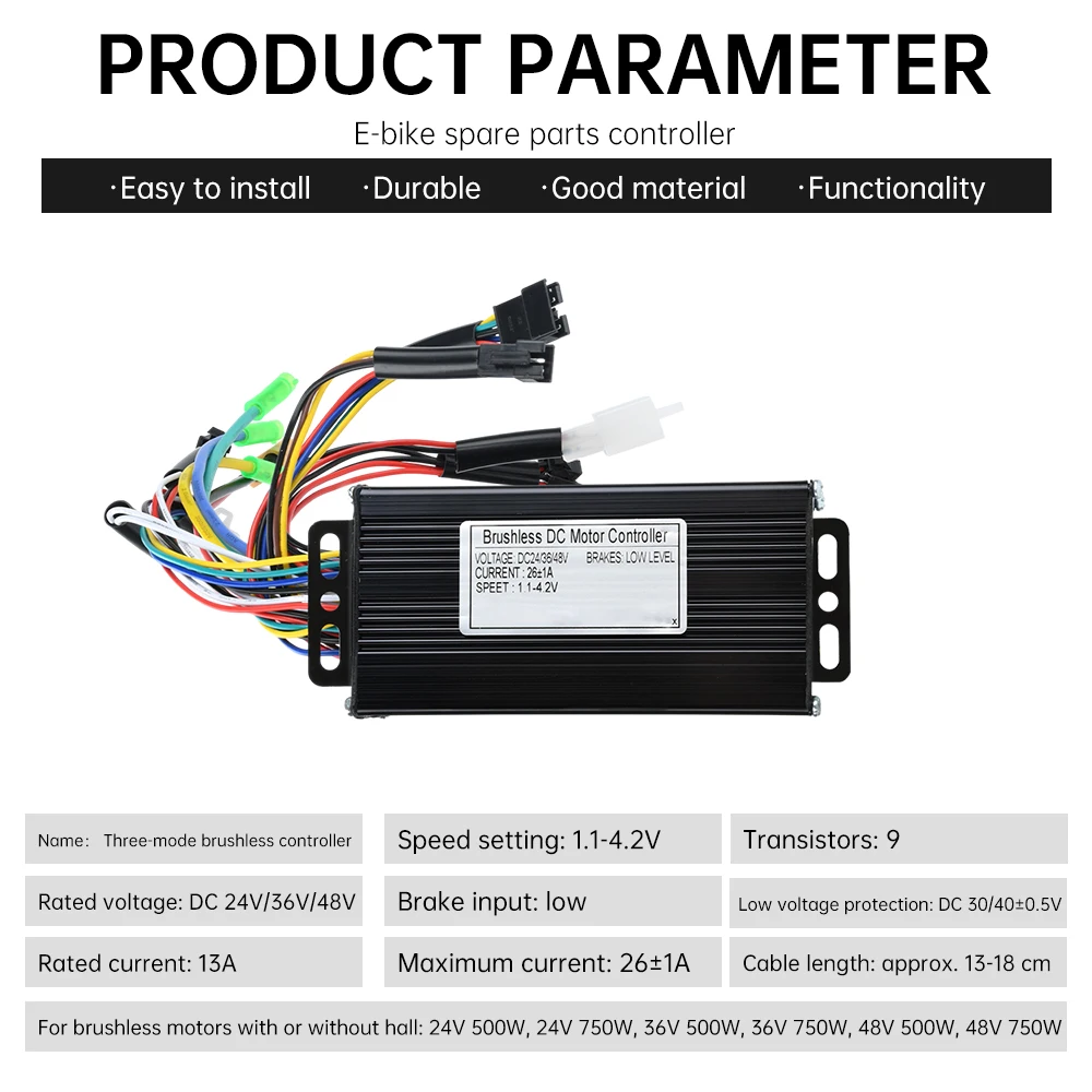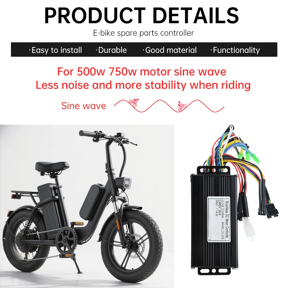24 V/36 V/48 V 26A 500 W/750 W Tre modalità controller motore brushless con/senza onda sinusoidale hall Per bicicletta elettrica Triciclo Ebike