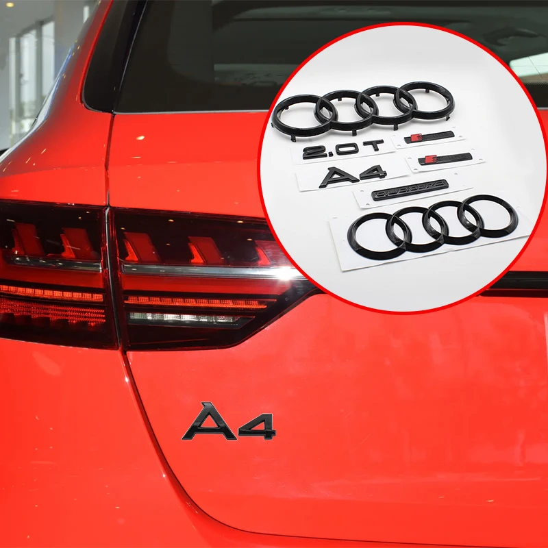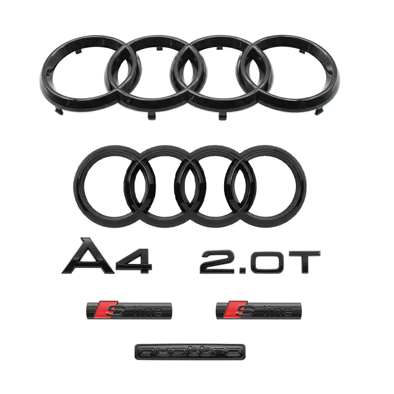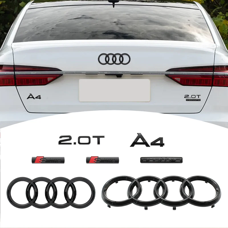 Emblema Logo A4 a 4 Anelli in ABS Nero per Audi A4 2008-2017, Adesivo per Griglia Anteriore e Bagagliaio, Accessorio Emblema Quarrto Sline