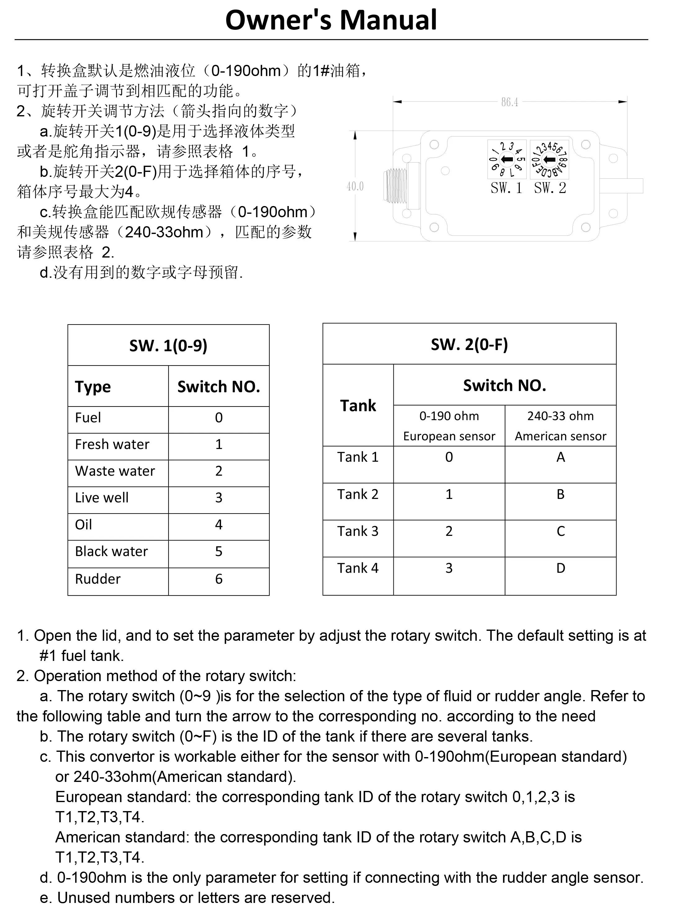 Sì, output 0-190ohm/240-33ohm, 9-32V, per yacht barche fuel water level.
