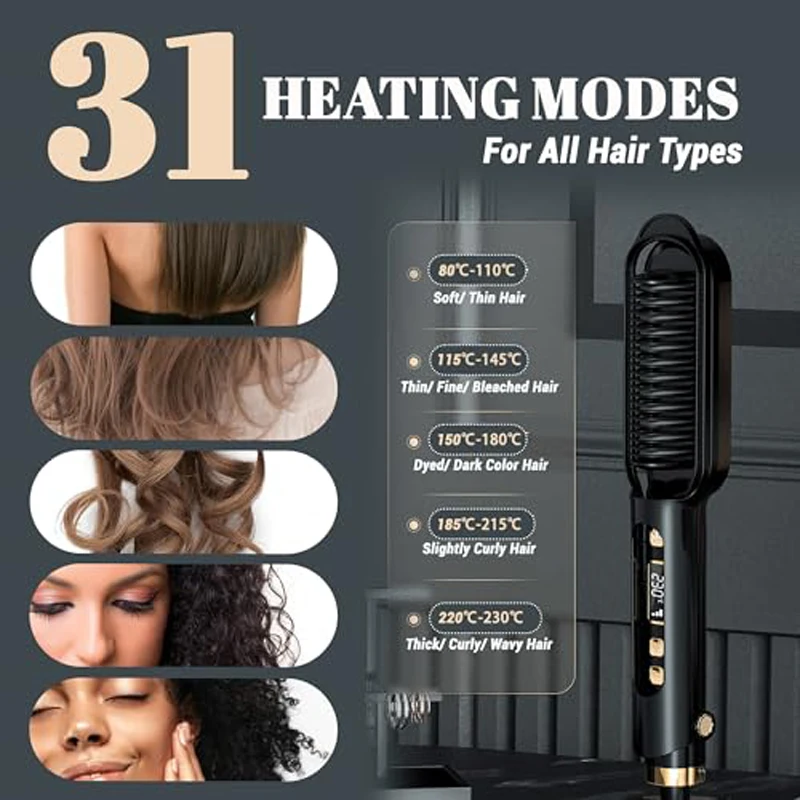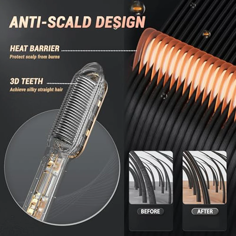 Pettine per lisciare i capelli elettrico antiscottatura 2 in 1 Spazzola per lisciare i ioni negativi a riscaldamento rapido Pettine liscio per denti