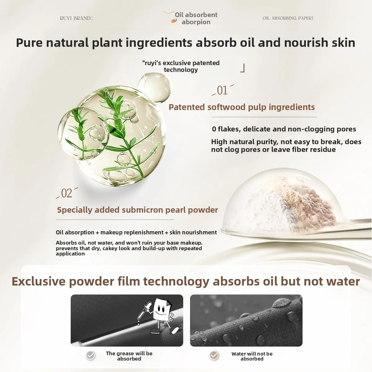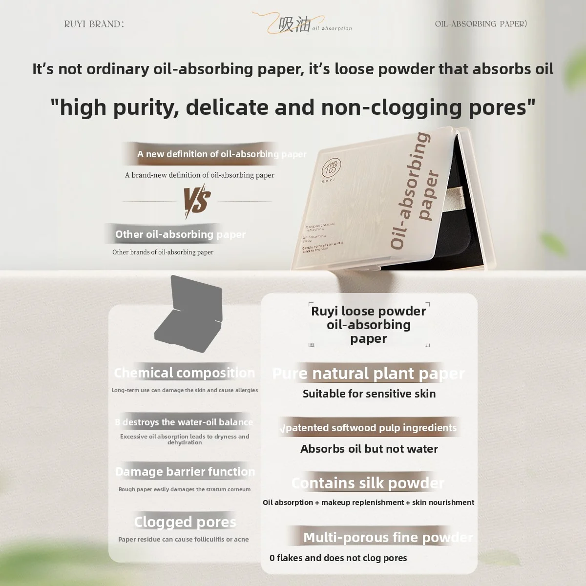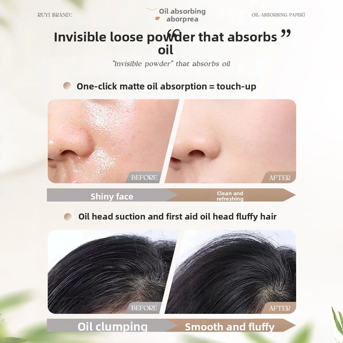 RUYI 100 pezzi di carta assorbente per olio con specchio e soffio di polvere, olio assorbente, carbone di bambù, fogli assorbente per olio per il viso, strumenti per il trucco