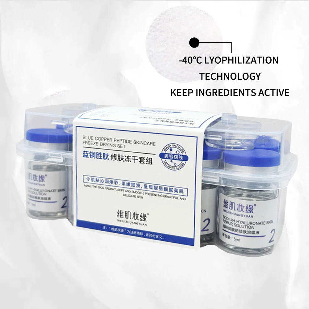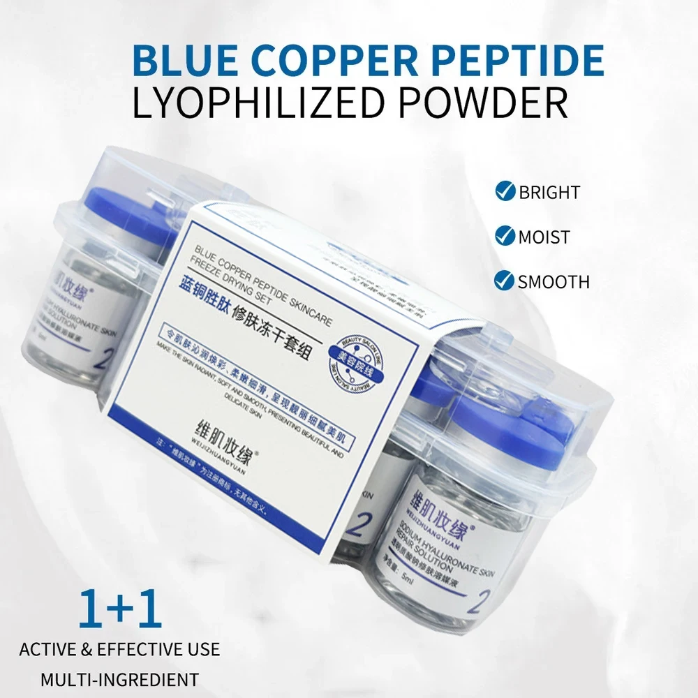Set di liofilizzazione con peptidi di rame blu, polvere liofilizzata, migliora l'essenza delle rughe, restringe i pori, trattamento dell'acne, set per la cura della pelle