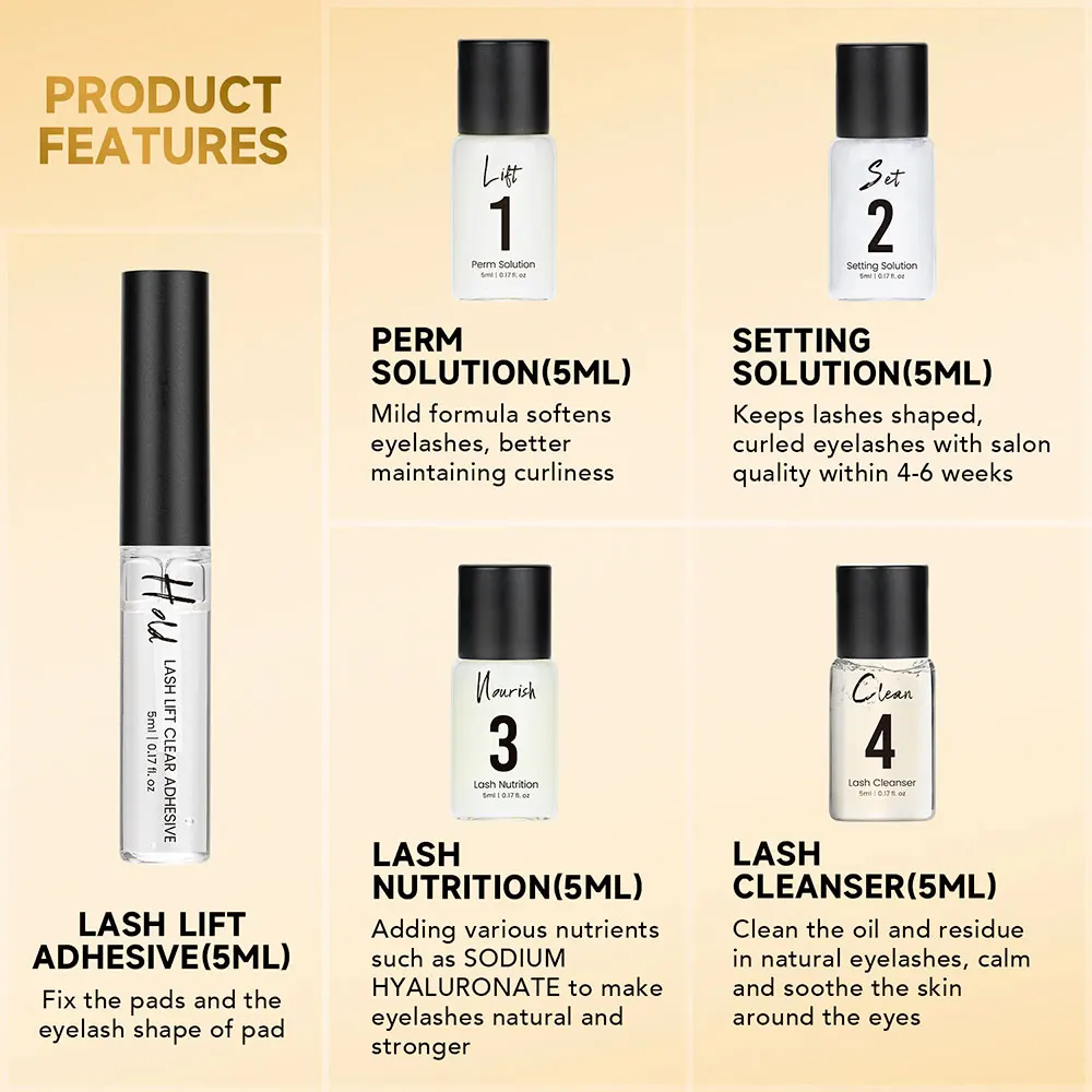 Kit per Permanente Ciglia Gollee, Trattamento con Arricciaciglia, Trucco Duraturo 4-6 Settimane, Set Professionale per Lifting Ciglia