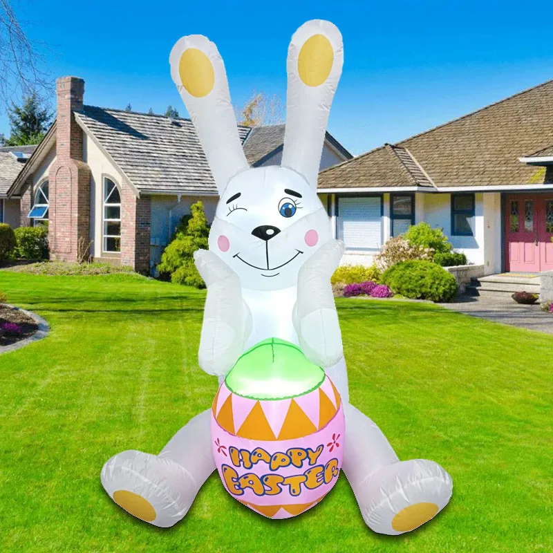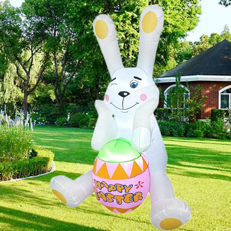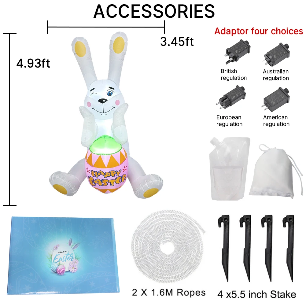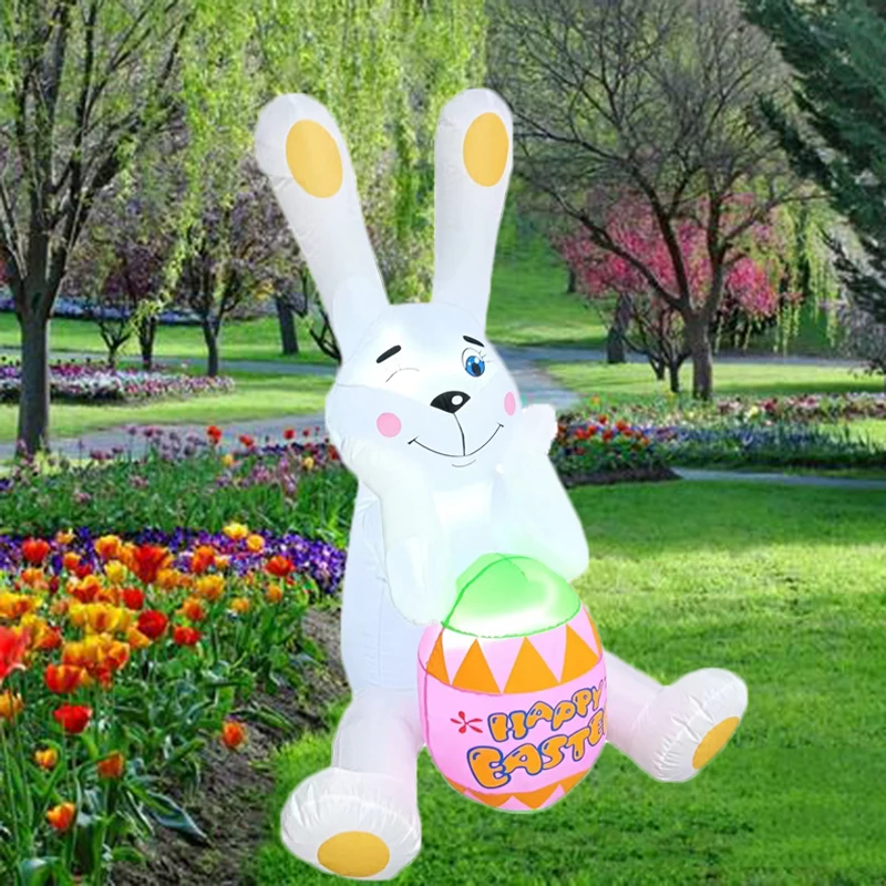 1.5m/5FT Decorazione di Pasqua Gonfiabile Seduta Coniglio Uovo di Pasqua con Luce a LED Interno Esterno Giardino Festa Scena Layout Ornamento