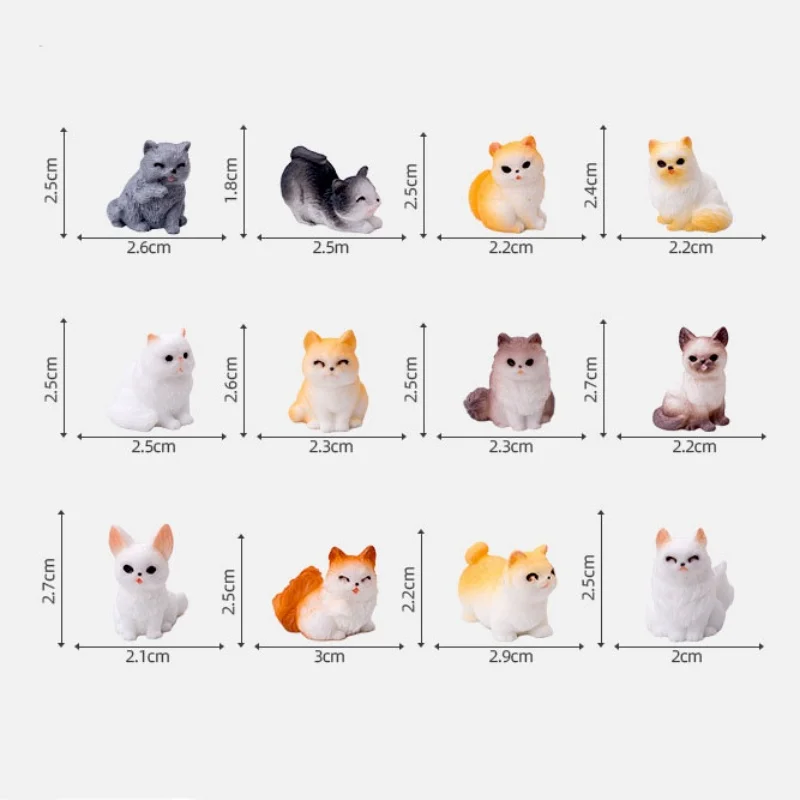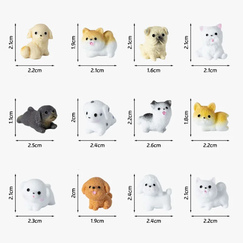 12 pezzi carino mini gatto piccolo cane decorazione animale artigianato in resina figura in miniatura minuscolo per bonsai microlandscape fata arredamento da giardino