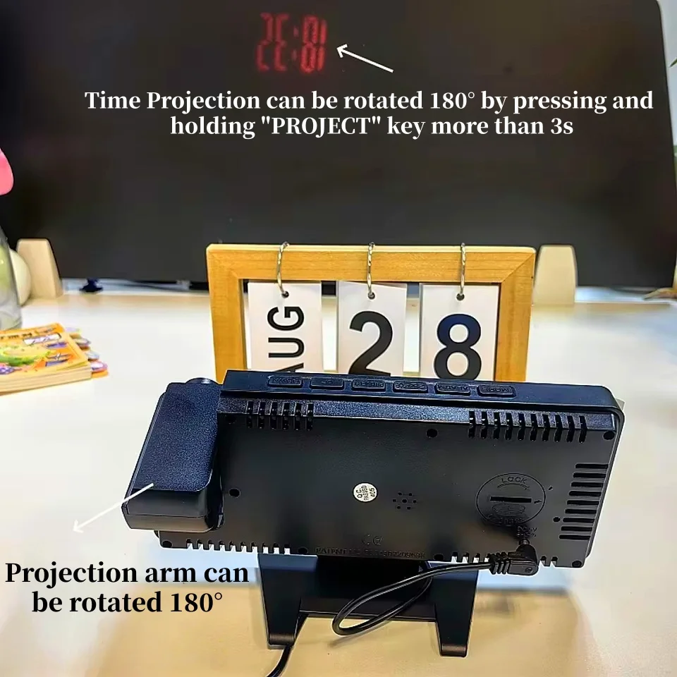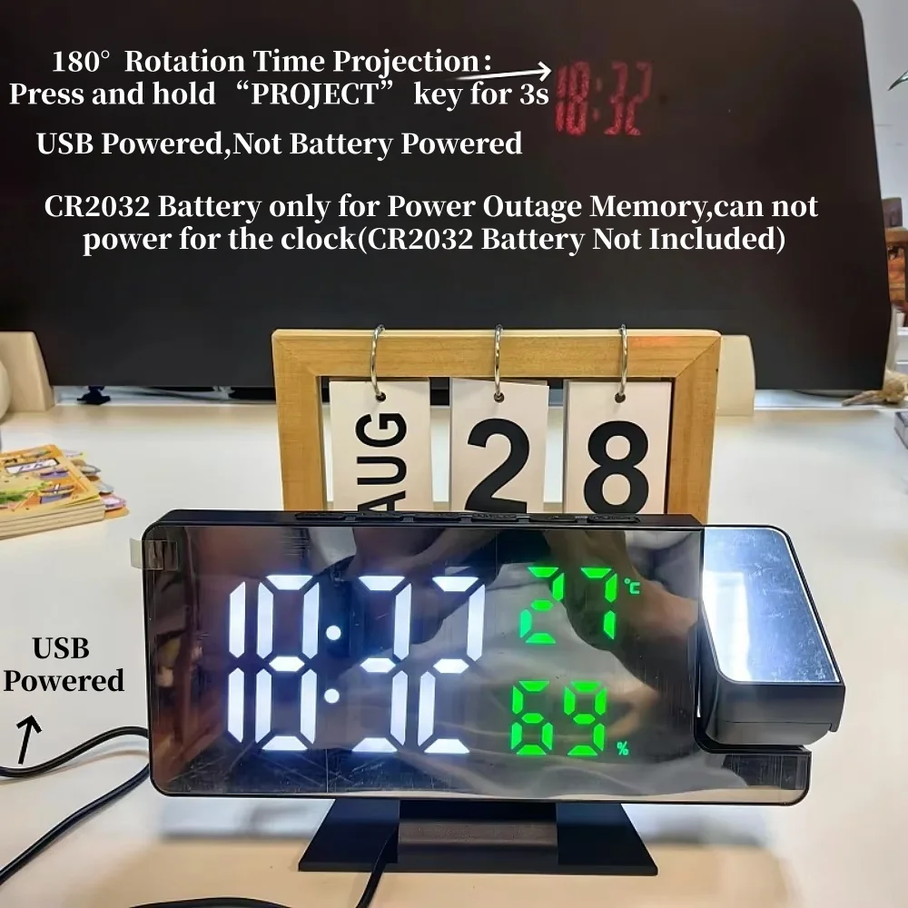 180 ° Sveglia Digitale con Proiezione Rotante, Temperatura, Umidità, Modalità Notturna, Snooze, 12/24H, Alimentazione USB, Orologio LED da Tavolo con Proiettore