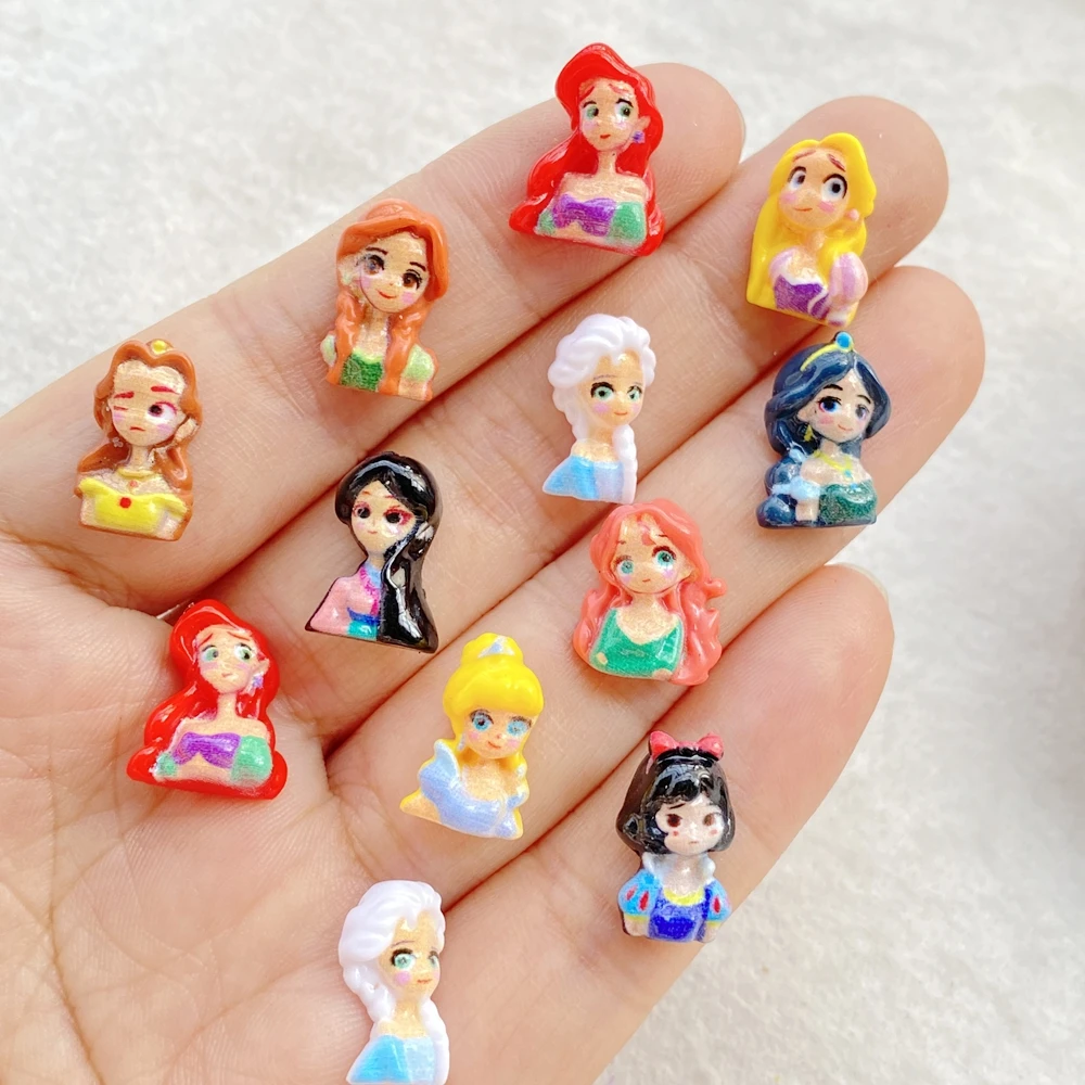 50 Pezzi Misti di Decorazioni per Unghie in Resina, Charm Cartoon Disney Princess, Strass per Nail Art 3D, Gioielli Fai-da-Te