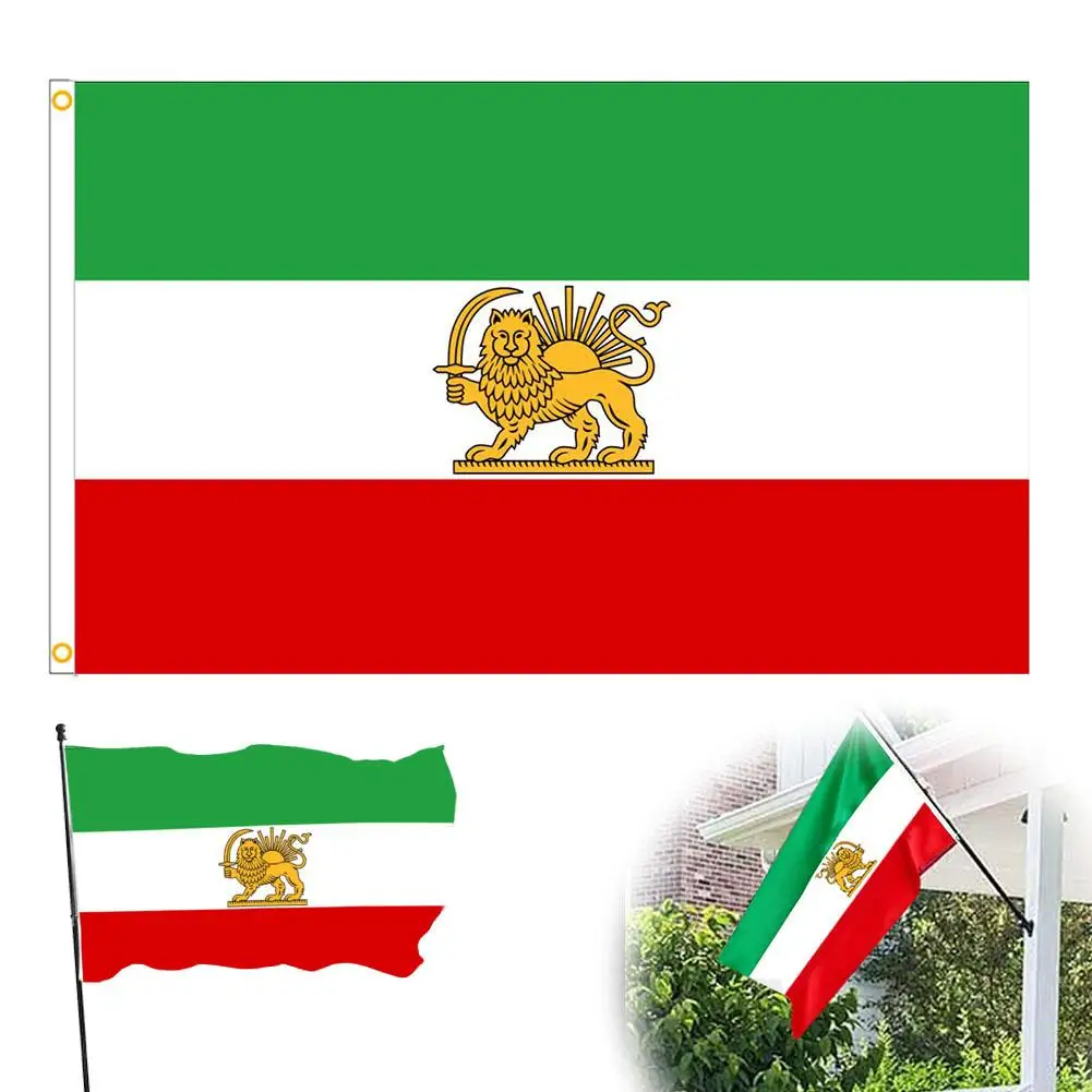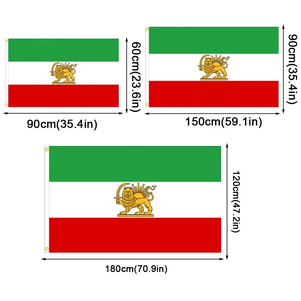 Bandiera Iraniana, Vecchia Bandiera dell'Iran, Stendardo Iraniano in Poliestere 100D con Due Occhielli Metallici, Resistente allo Sbiadimento, Colori Vivaci, 3 Misure