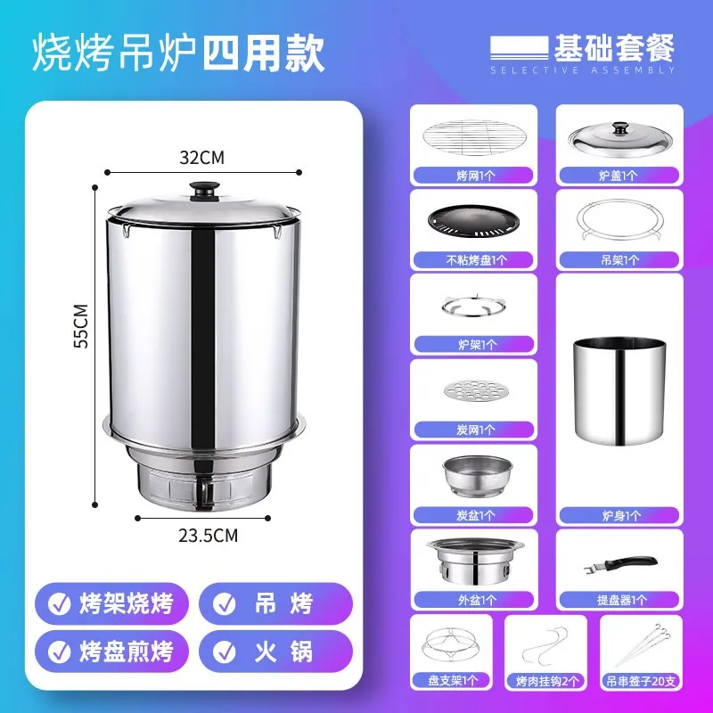 Forno sospeso Fornello per barbecue Griglia per barbecue domestico Fornello per barbecue all'aperto Carbone commerciale Cortile Kebab BBQ Carbonio