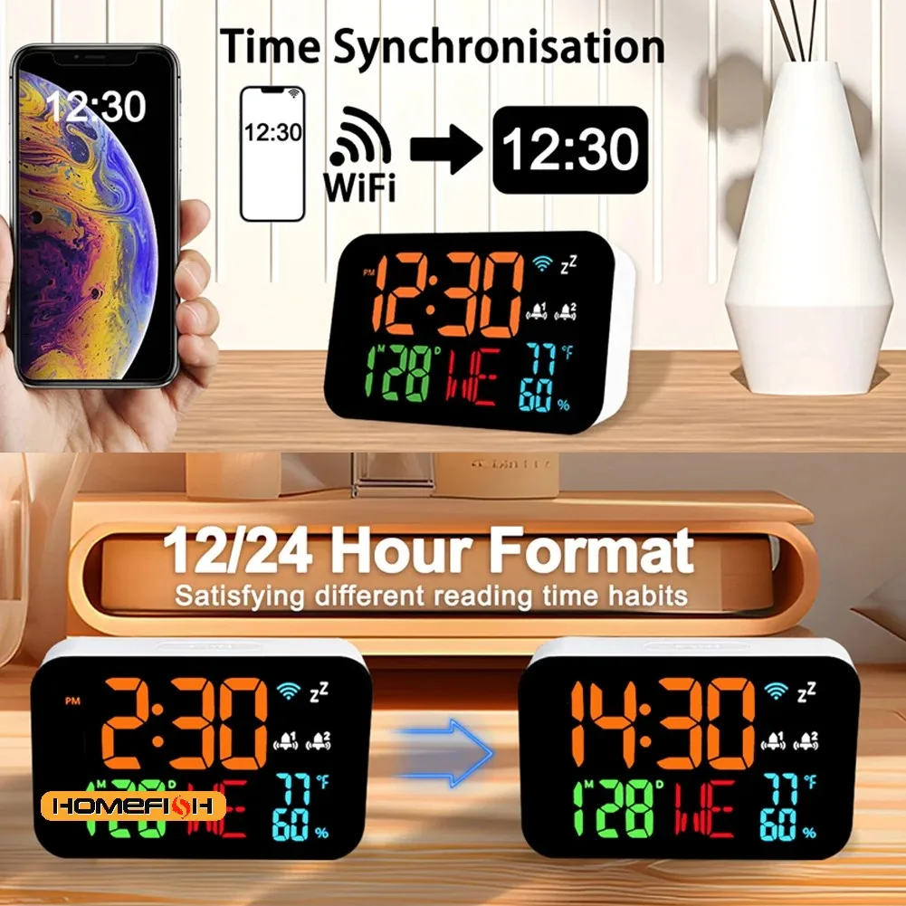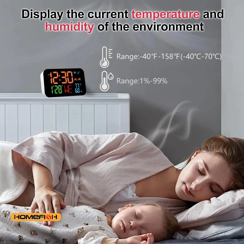 Tuya WiFi Orologio da tavolo Calendario Termometro intelligente Igrometro con display LED digitale Supporto WIFI Calibrazione automatica