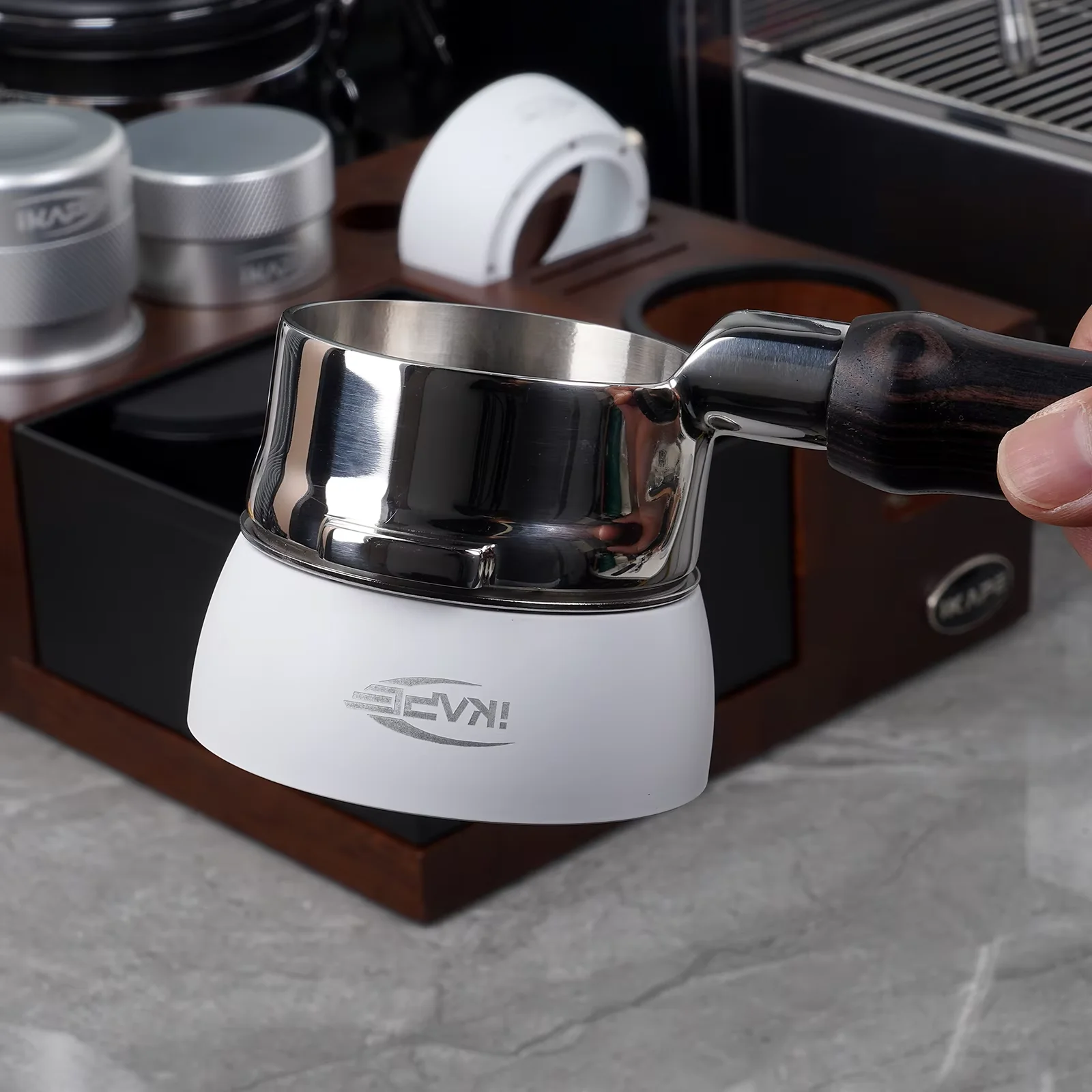 Imbuto Dosatore Magnetico IKAPE per Espresso 51/54/58mm, Forte Magnetismo, Adatto a Portafiltro Universale, Bianco/Nero/Argento