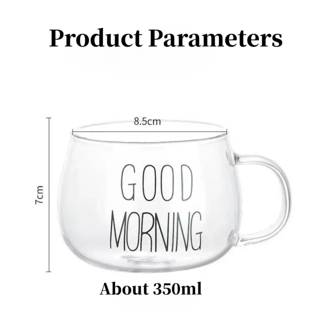 Tazza da tè in vetro da 350 ml 1 pezzo Lettera stampata Tazza Bevande Dessert Colazione Tazza da latte Tazze in vetro Maniglia Bicchieri