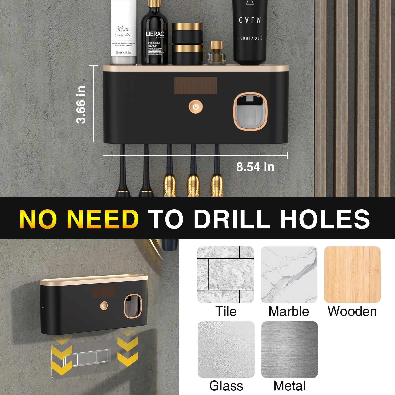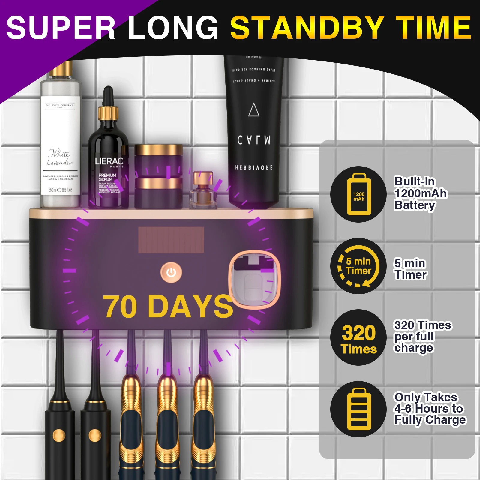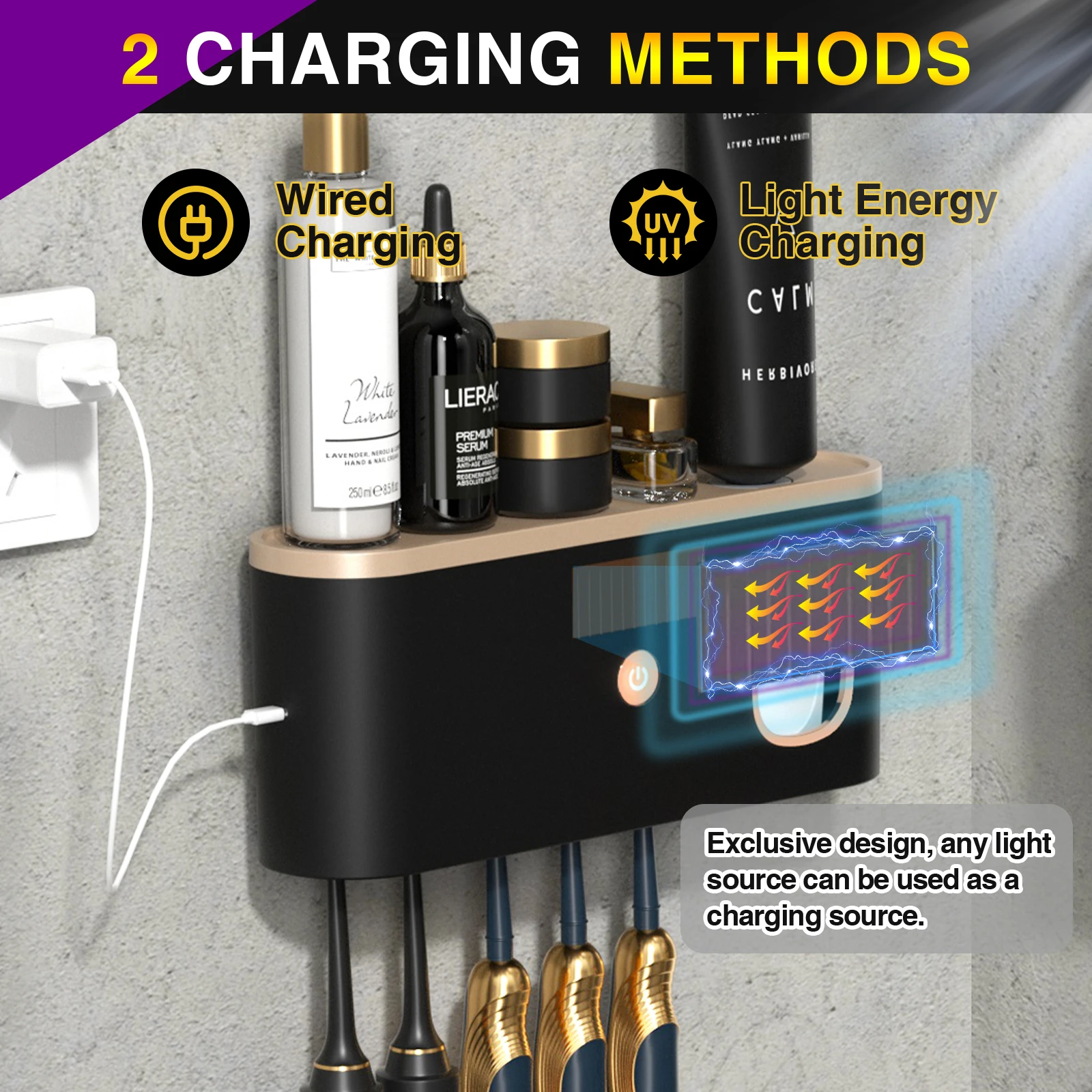 Portaspazzolino ricaricabile con disinfettante UV e dispenser di dentifricio - Organizer per spazzolino da bagno
