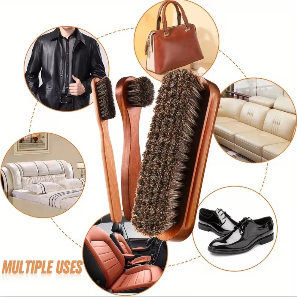 Set di 3 Spazzole in Crine di Cavallo per Lucidatura, Applicatore per Stivali in Pelle, Scarpe in Camoscio e Accessori per la Pulizia Dettagliata degli Interni Auto