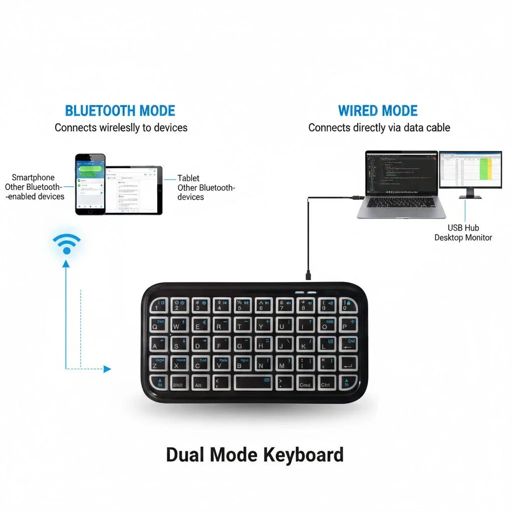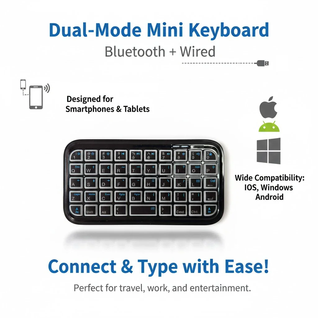 Mini Tastiera Ricaricabile Type-C Dual-Mode (Bluetooth + Cablata) con Retroilluminazione RGB, Portatile da Tasca, 49 Tasti per Tablet e Smartphone