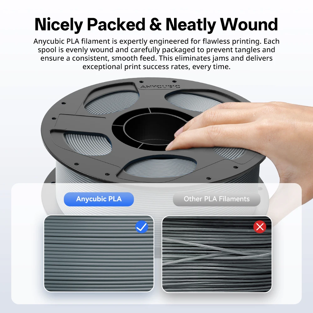 ANYCUBIC Filamento per stampante 3D Filamento PLA da 1,75 mm 1 kg/rotolo 9 colori Bobina ordinata Nessuna bolla Nessun collegamento per stampante 3D Mega-S Chiron